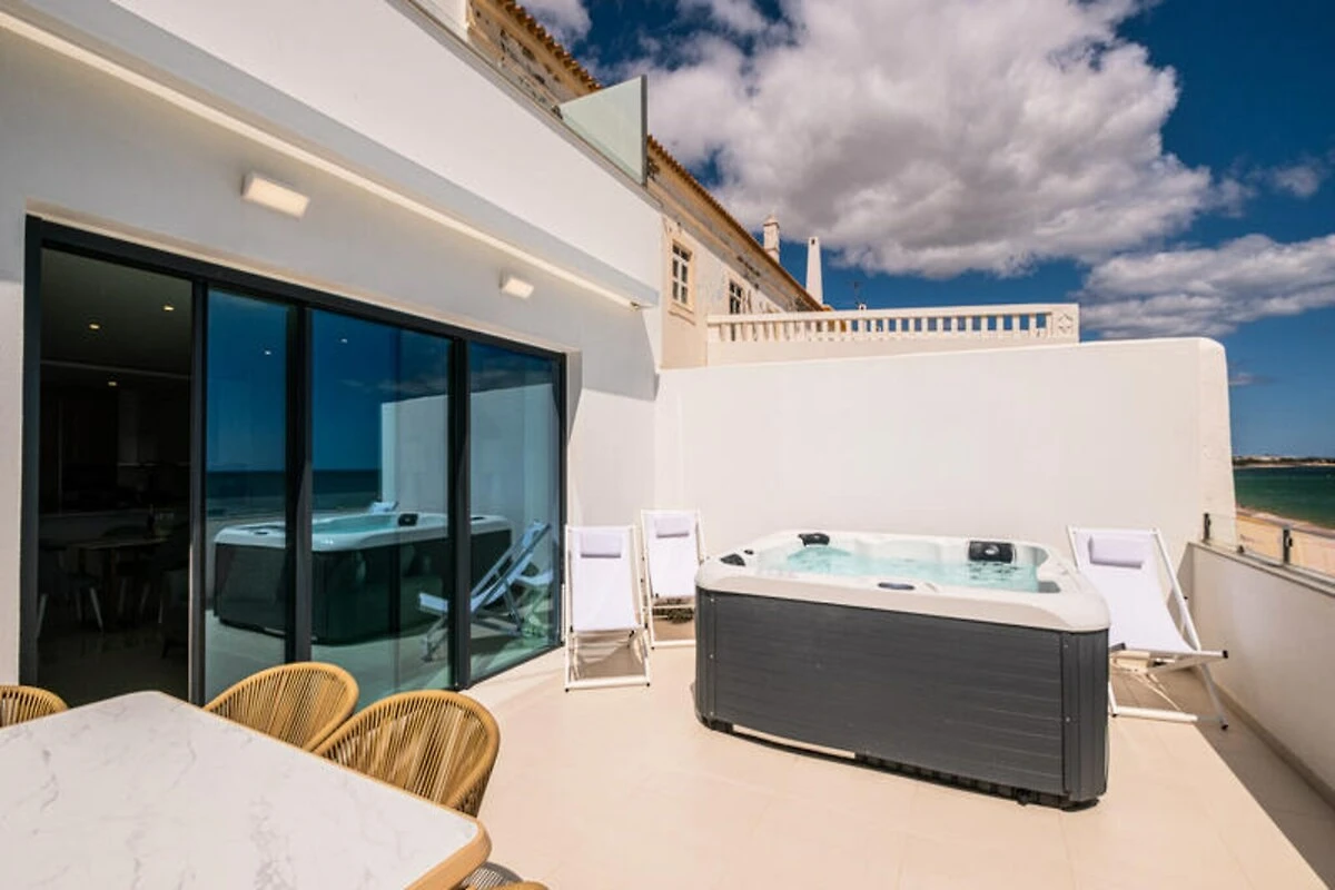 Het appartement beslaat 100 m² en beschikt over drie prachtig ingerichte slaapkamers, waardoor comfort gegarandeerd is voor gezinnen of groepen vrienden. De open keuken is volledig uitgerust met ultramoderne apparatuur, waaronder een vaatwasser, oven en koffiezetapparaat, waardoor het bereiden van maaltijden een fluitje van een cent is. Ontspan in de woonkamer met satelliet-tv of kom tot rust in het verwarmde privézwembad of de jacuzzi. Extra voorzieningen zoals airconditioning, centrale verwarming, wifi en parkeergelegenheid buiten zorgen voor een zorgeloos en comfortabel verblijf. Het balkon en de omheinde tuin bieden serene ruimtes om te genieten van de zon van de Algarve.