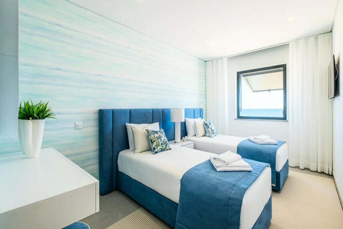 Waar de gouden kustlijn van de Algarve de charme van een rustig kustplaatsje ontmoet, biedt dit elegante appartement in Armação de Pêra een perfect toevluchtsoord voor wie op zoek is naar ontspanning en avontuur. Dankzij de centrale ligging bent u slechts enkele minuten verwijderd van de ongerepte stranden en het bruisende lokale leven, maar toch omgeven door de rust en privacy van uw eigen oase. De zachte zeebries en de warme Portugese zon creëren een uitnodigende sfeer voor een onvergetelijke vakantie. Stap binnen in dit ruime appartement van 100 m², ontworpen om comfortabel plaats te bieden aan maximaal vier gasten. De twee goed ingerichte slaapkamers zorgen voor een rustgevende nachtrust, terwijl de open keuken uitnodigt om heerlijke maaltijden te bereiden met moderne apparatuur, waaronder een koelkast, magnetron, oven en vaatwasser. De woonkamer is uitgerust met drie televisies en satellietzenders in meerdere talen, wat entertainment voor iedereen garandeert. Extra voorzieningen zoals airconditioning, centrale verwarming, wifi, een wasmachine en een kluis dragen bij aan het gemak en comfort van uw verblijf. Buiten bieden het verwarmde privézwembad en de jacuzzi de perfecte setting om te ontspannen, terwijl het terras en balkon een prachtig uitzicht bieden en momenten van rust bieden. De charme van Armação de Pêra schuilt in de mix van natuurlijke schoonheid en culturele levendigheid. Wandel langs de zandstranden, verken de nabijgelegen kliffen en baaien, of geniet van verse visgerechten in lokale restaurants. De levendige markten en pittoreske straatjes van de stad zijn perfect voor een ontspannen verkenningstocht, terwijl de omliggende Algarve eindeloze mogelijkheden biedt voor avontuur, van golfbanen tot watersporten. Of u nu op zoek bent naar een romantisch uitje of een gezinsuitje, dit appartement is uw toegangspoort tot het beste van de Algarve. Laat het rustgevende ritme van de golven en de charme van de Portugese gastvrijheid uw verblijf onvergetelijk maken.