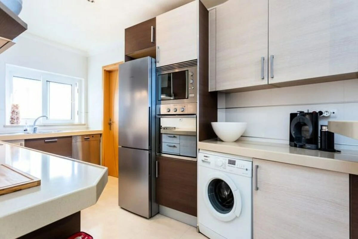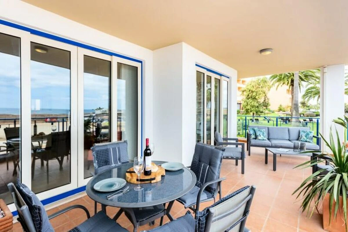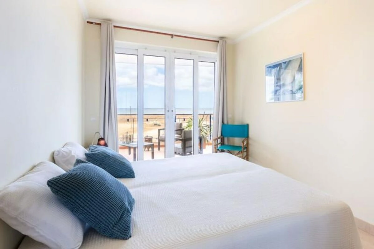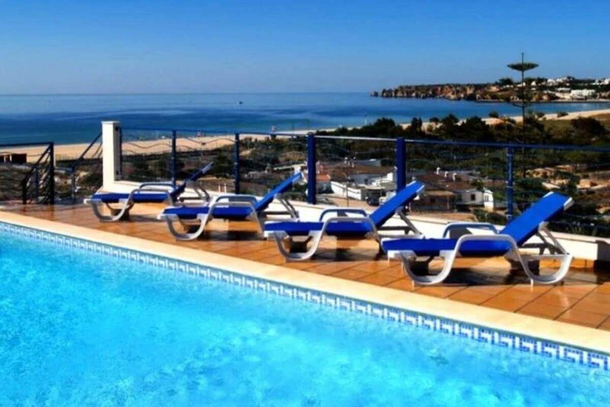 Stel je voor dat je wakker wordt met het rustgevende geluid van de golven en de eindeloze horizon van de Atlantische Oceaan die zich voor je uitstrekt. Dit luxe appartement met 2 slaapkamers en 2 badkamers is een waar toevluchtsoord aan zee, perfect gelegen op slechts een steenworp afstand van het gouden zandstrand van Meia Praia in Lagos. Met zijn moderne ontwerp en elegante interieur biedt deze accommodatie een rustig toevluchtsoord voor gezinnen of stellen die op zoek zijn naar een combinatie van comfort en adembenemende uitzichten. Of je nu geniet van je ochtendkoffie op het ruime privébalkon of een duik neemt in het zwembad op het dak, elk moment voelt hier als een viering van de schoonheid van de kust.