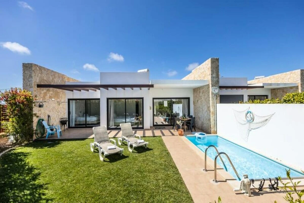 Buiten nodigt de privétuin u uit om te genieten van de zon van de Algarve. Neem een verfrissende duik in het zwembad of ontspan op het terras op het zuidoosten met een boek of een glas wijn. De rustige woonomgeving zorgt voor een ontspannen verblijf, terwijl de nabijheid van lokale voorzieningen en stranden extra gemak biedt. Er is privéparkeergelegenheid beschikbaar en een huurauto wordt aanbevolen om de prachtige kustlijn en nabijgelegen bezienswaardigheden te verkennen.