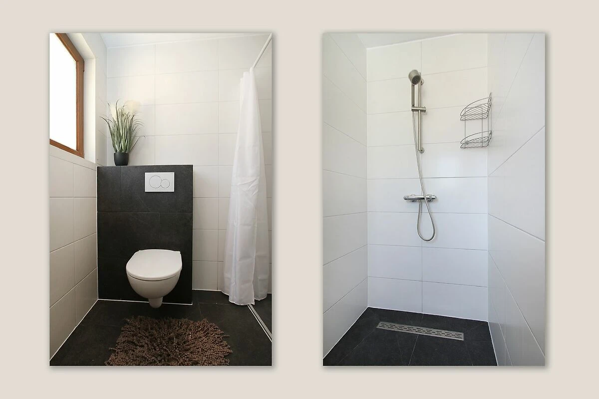 Het huisje heeft drie slaapkamers, elk met een eigen sfeer. Een kamer met een tweepersoonsbed, een lichte kamer met twee eenpersoonsbedden en een babykamer met een ledikant. Het geheel voelt huiselijk en rustig, ideaal voor gezinnen en stellen.