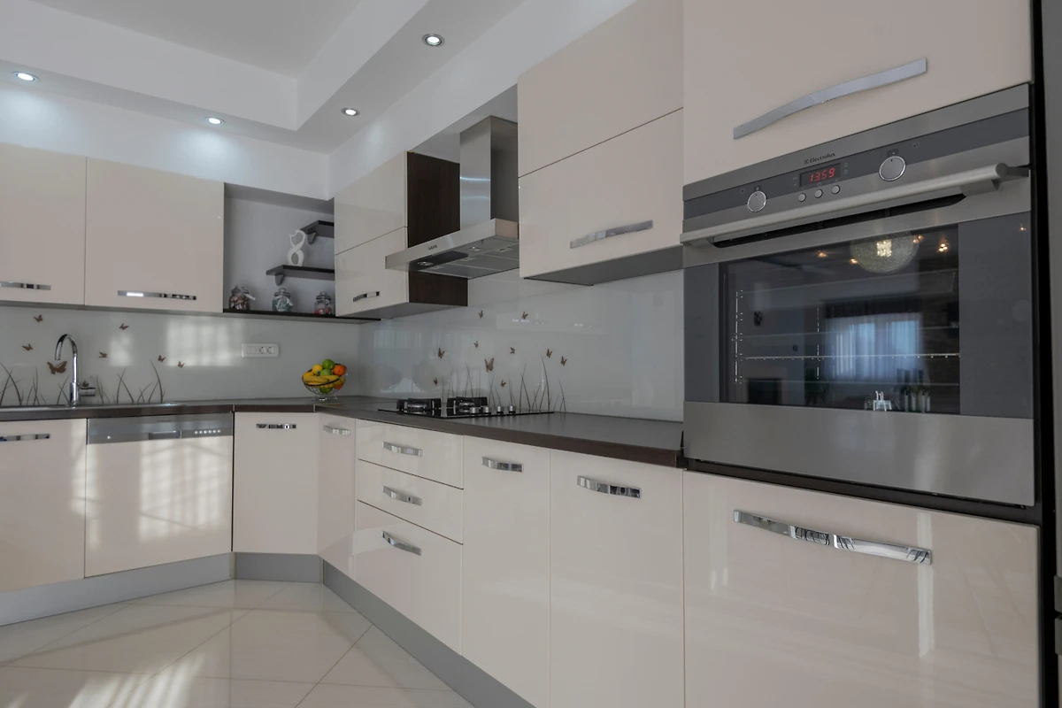 De open keuken, met gasfornuis, is uitgerust met koelkast, magnetron, oven, vriezer, vaatwasmachine, servies/bestek, keukengerei, koffiezetapparaat en broodrooster.