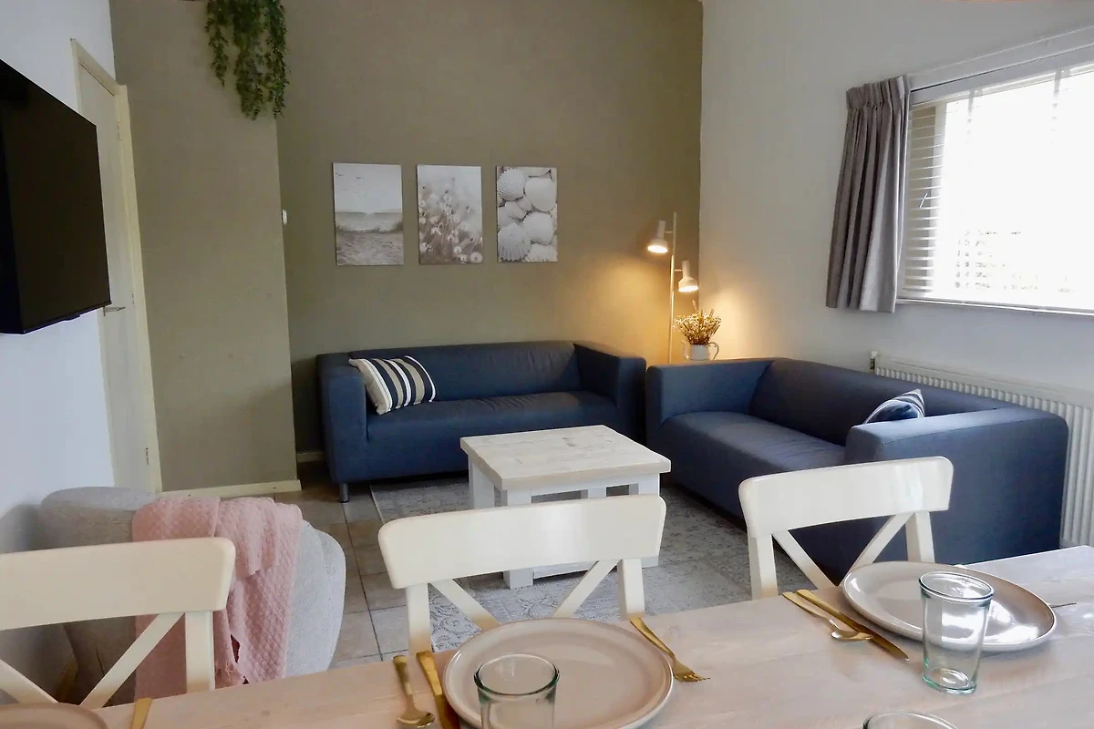In de sfeervol ingerichte woonkamer met zithoek staat een TV met internet en een eettafel voor 6 personen. De moderne, nieuwe keuken is compleet ingericht met o.a. inductie kookplaat, koelkast met vriesvak, combi-oven, vaatwasser, volautomaat koffiezetapparaat (bonen), waterkoker en broodrooster, etc.