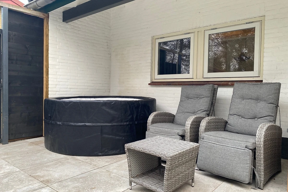 In de veranda staat de Jacuzzi / Hottub om heerlijk te ontspannen. De watertemperatuur is 38 graden en er is plaats voor 4 volwassenen.