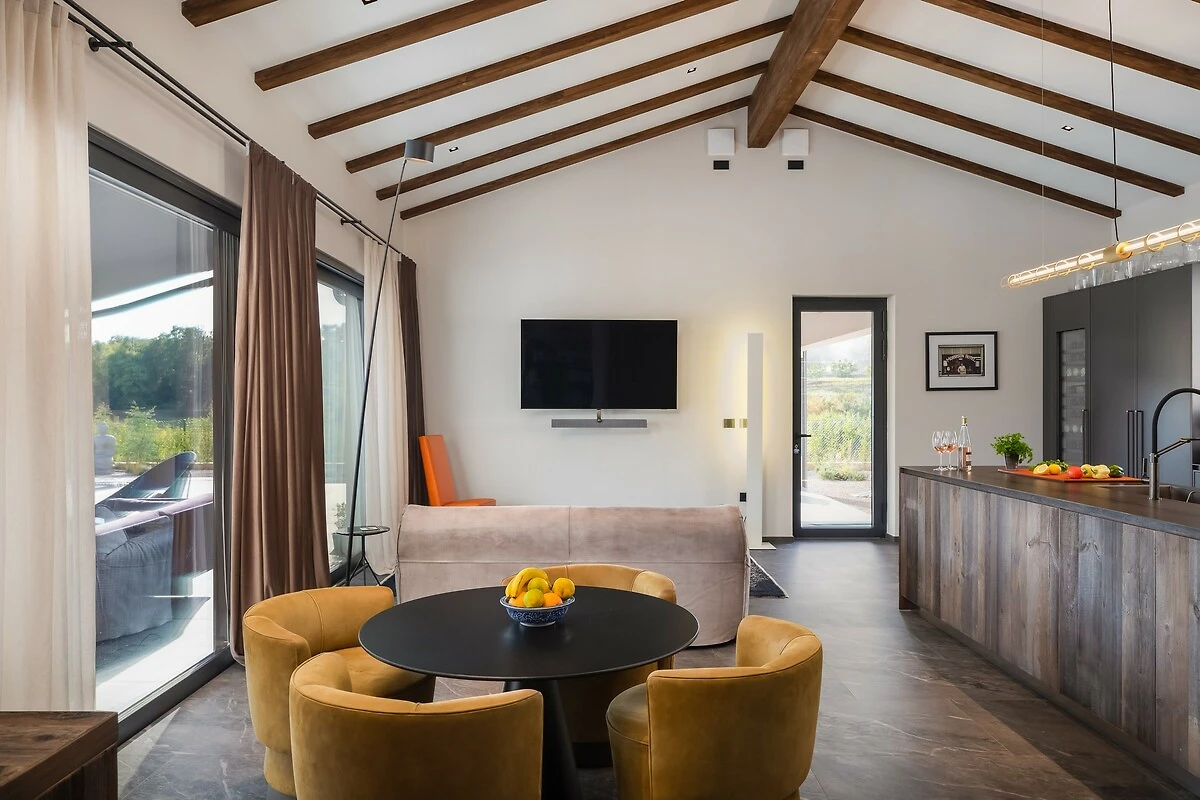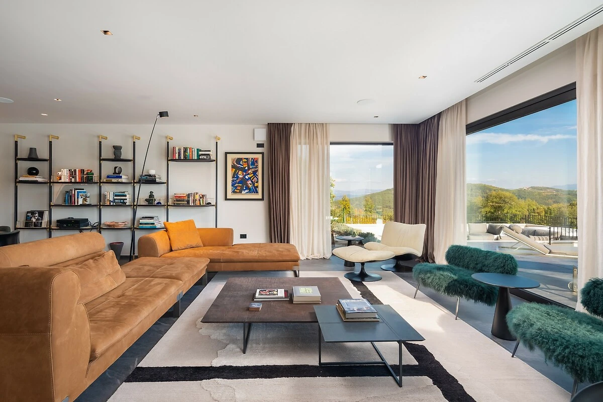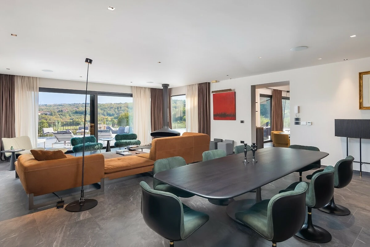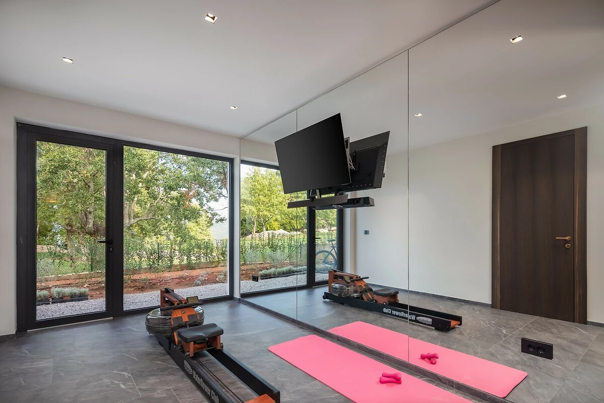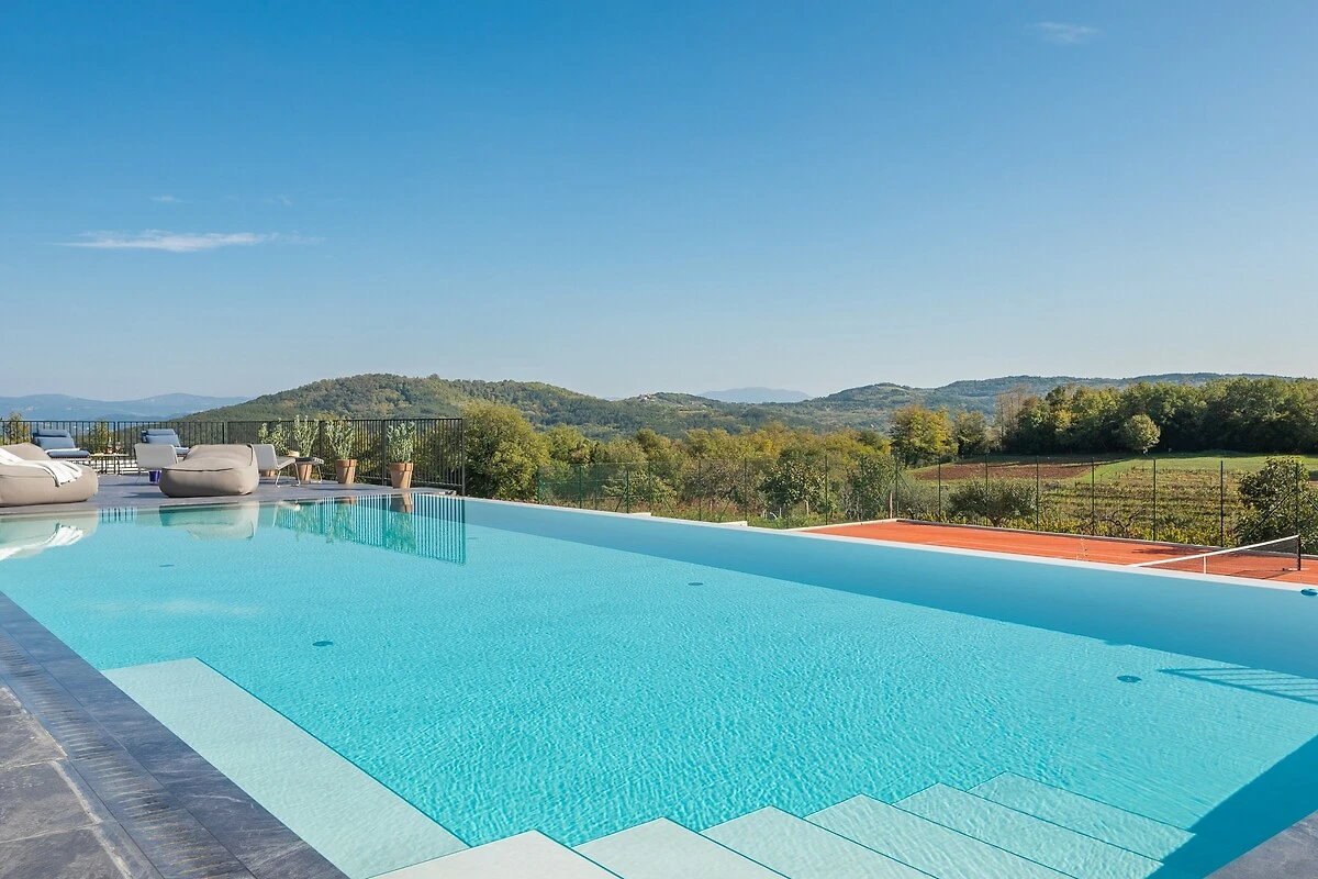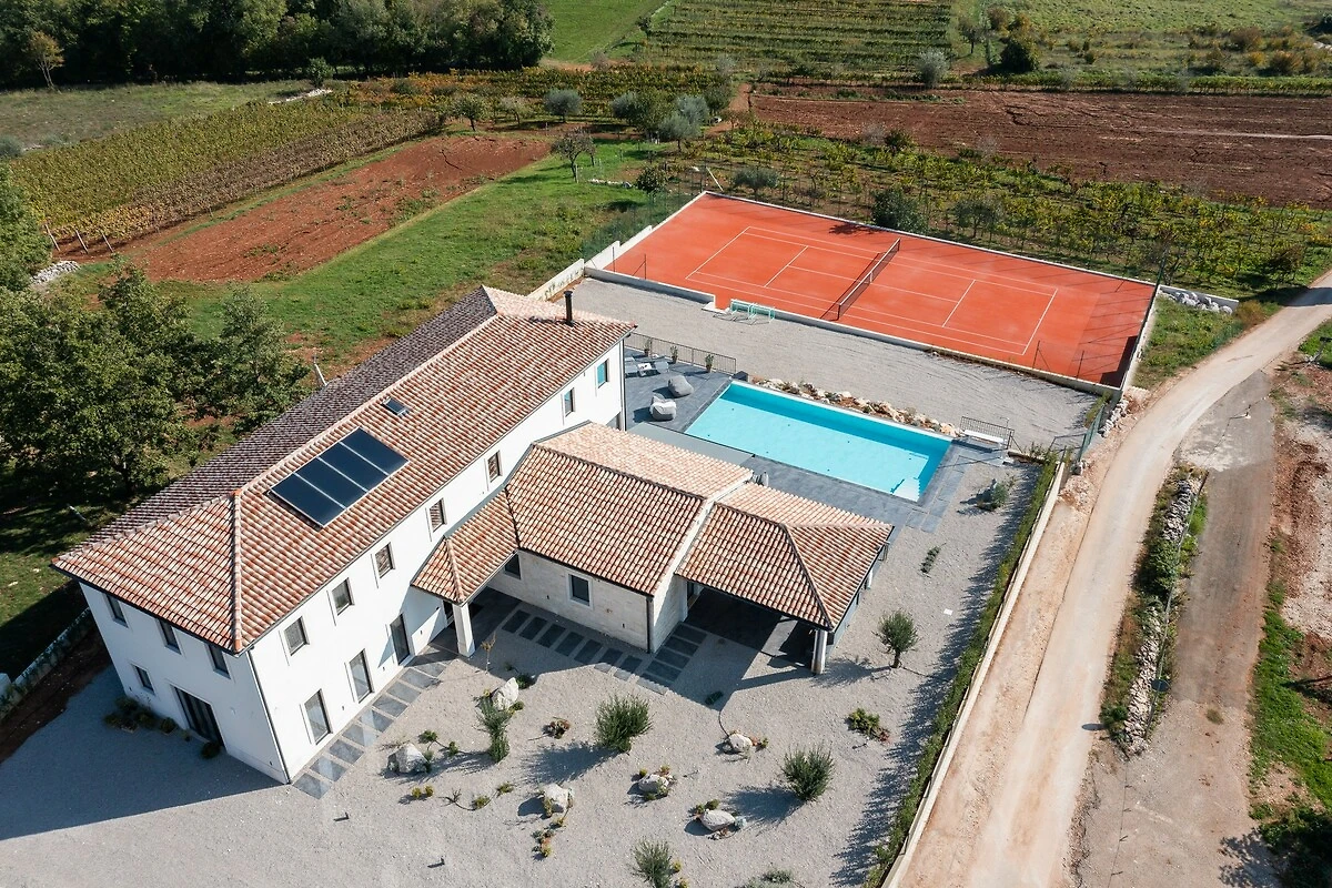 Voor sportliefhebbers biedt de villa een eigen tennisbaan, waar gasten actief de dag kunnen doorbrengen. Het hele terrein is omheind, wat veiligheid en absolute privacy garandeert en tegelijkertijd toelaat om van de rust en de frisse lucht van het Istrische platteland te genieten. Panoramische uitzichten op wijngaarden en de heuvels van Istrië maken het gevoel van prestige en ontspanning compleet.