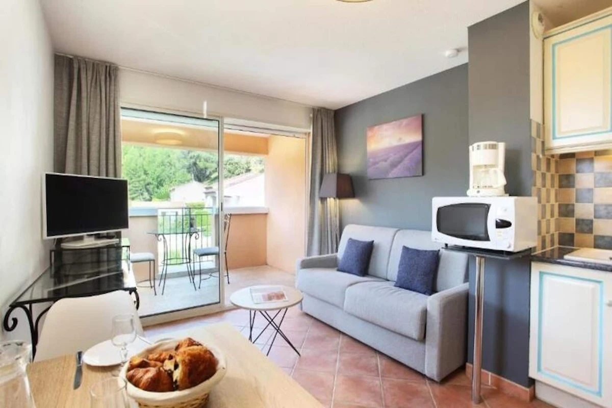 Het studio-appartement beschikt over een comfortabele woonkamer met een slaapbank, een volledig uitgeruste kitchenette en een badkamer met een douche of bad. Geniet van het gemak van Wi-Fi, gratis toegang tot de buiten- en binnenzwembaden (seizoensgebonden geopend) en aanvullende wellnessdiensten zoals de sauna, de fitnessruimte en schoonheidsbehandelingen. Beddengoed en de eindschoonmaak zijn bij de prijs inbegrepen. Een babypakket en handdoeken zijn beschikbaar tegen een extra vergoeding.