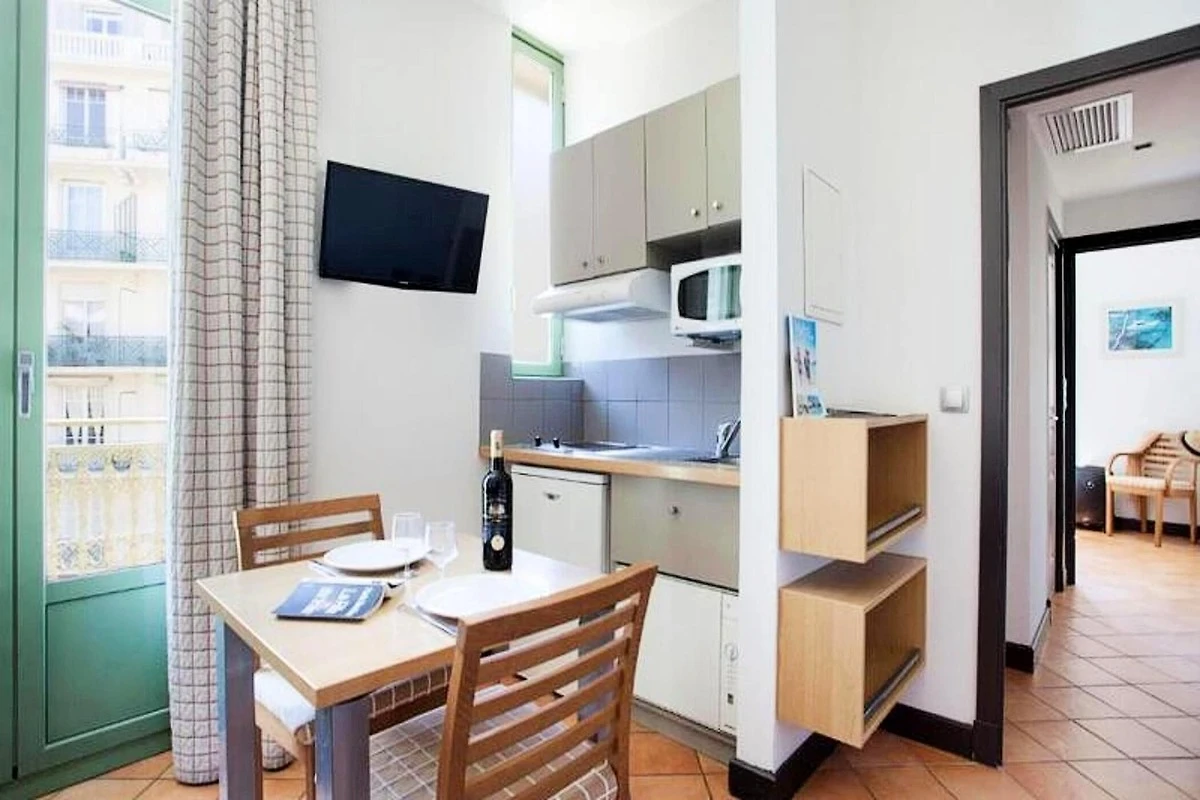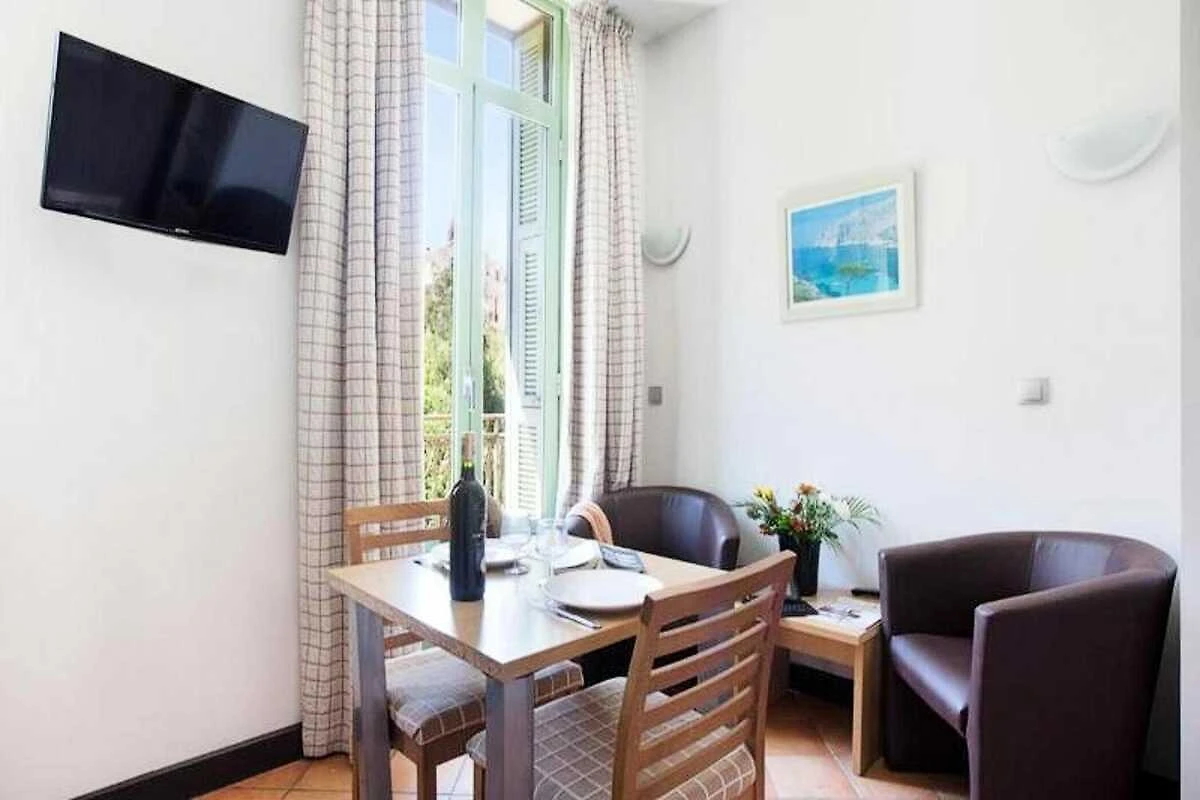 Deze charmante accommodatie is ideaal gelegen in het hart van Nice, op slechts 400 meter van het treinstation, waardoor reizigers die met de trein arriveren gemakkelijk bereikbaar zijn. Het gebouw is gevestigd in een voormalig hotel uit de jaren dertig en heeft de levendige gevels die typerend zijn voor de regio, waarbij klassieke charme wordt gecombineerd met moderne voorzieningen. Deze centrale locatie, op slechts 700 meter van de zee en op loopafstand van het bruisende Place Masséna, zorgt voor een handige uitvalsbasis voor het verkennen van de stad en haar omgeving.