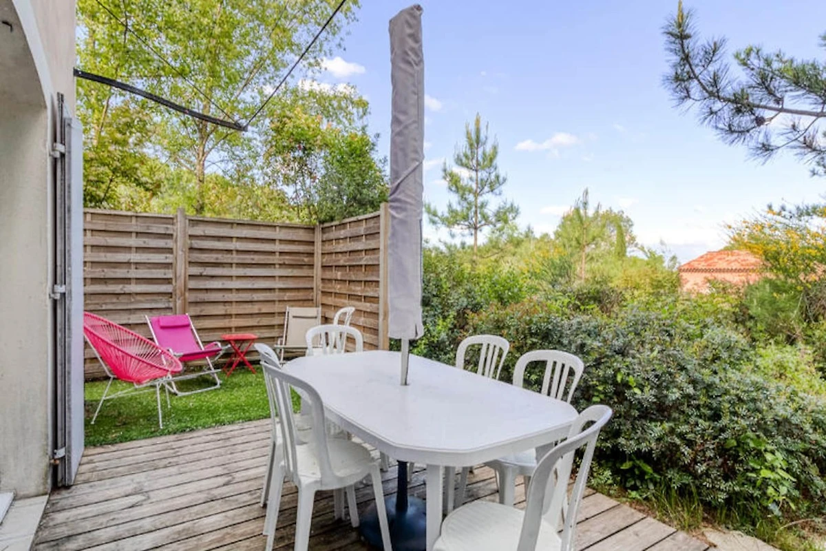 Het vakantiehuis beschikt over een volledig uitgeruste keuken in Amerikaanse stijl met een eettafel, ideaal voor het bereiden van maaltijden. Het beschikt ook over twee badkamers, één met een ligbad en de andere met een douche. Extra voorzieningen zijn onder andere een elektrische handdoekdroger, een haardroger en een ruim terras met uitzicht op het westen. De huurprijs is inclusief beddengoed. Handdoeken zijn beschikbaar tegen een toeslag.