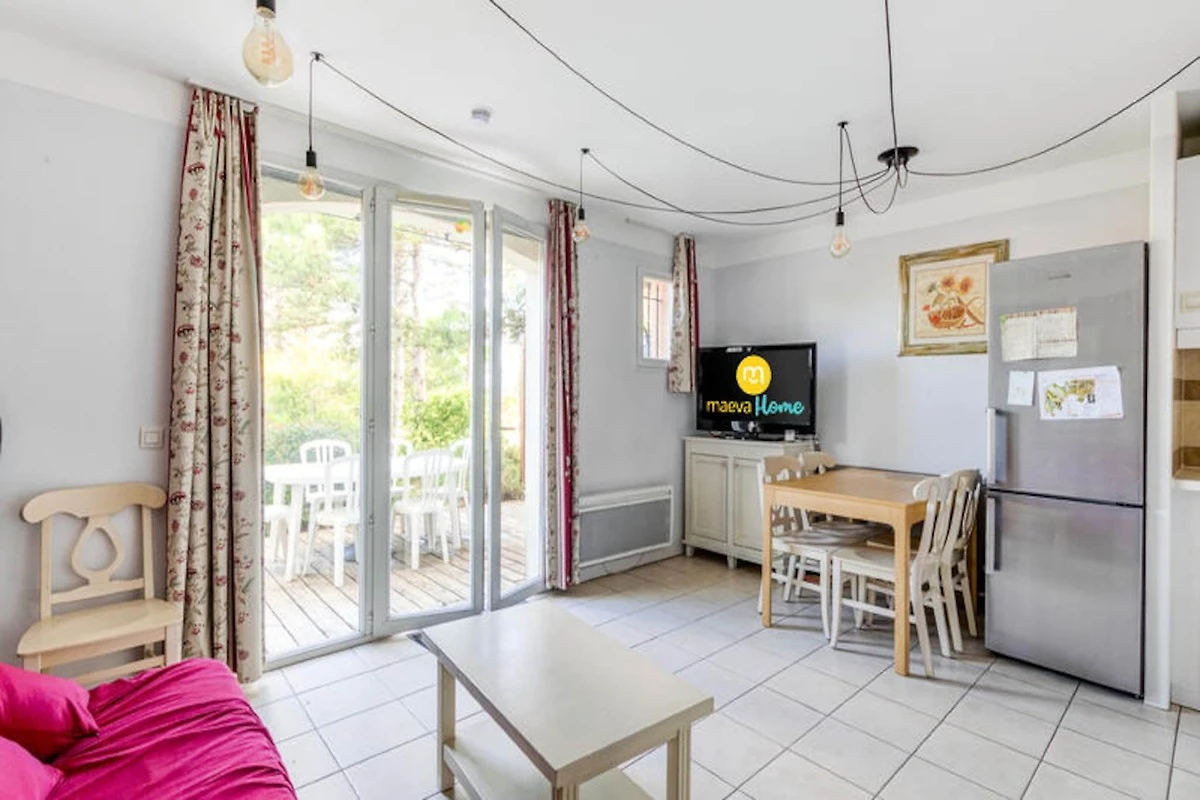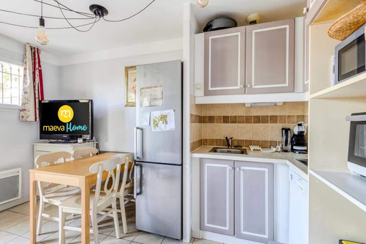 Dit charmante vakantiehuis ligt in het mooie dorp Rouret en biedt een comfortabel verblijf met moderne voorzieningen. Het beschikt over twee slaapkamers, één met een tweepersoonsbed en de andere met twee eenpersoonsbedden, plus een cabinegedeelte met een eenpersoonsbed. De woonkamer is voorzien van een slaapbank voor extra slaapruimte en biedt plaats aan maximaal 6 personen. Het huis is huisdiervriendelijk, tegen een toeslag, en biedt een terras om buiten te ontspannen, evenals een speciale parkeerplaats.