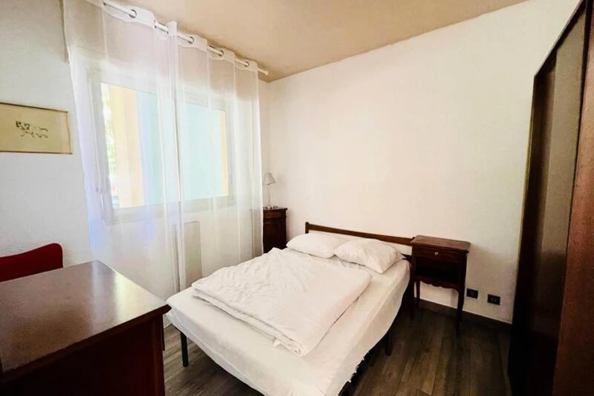 Dit charmante appartement met één slaapkamer is ideaal gelegen op slechts 100 meter van het strand van Eyrac en op slechts 400 meter van het Château Deganne (casino), en biedt een rustig en comfortabel verblijf. Gelegen op de begane grond van een beveiligde woning, beschikt het over een functionele indeling met een hal voor opslag en een gezellige woonkamer die uitkomt op een terras op het westen.