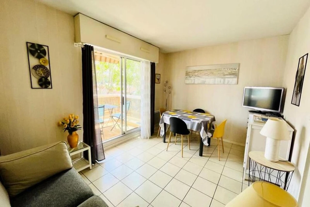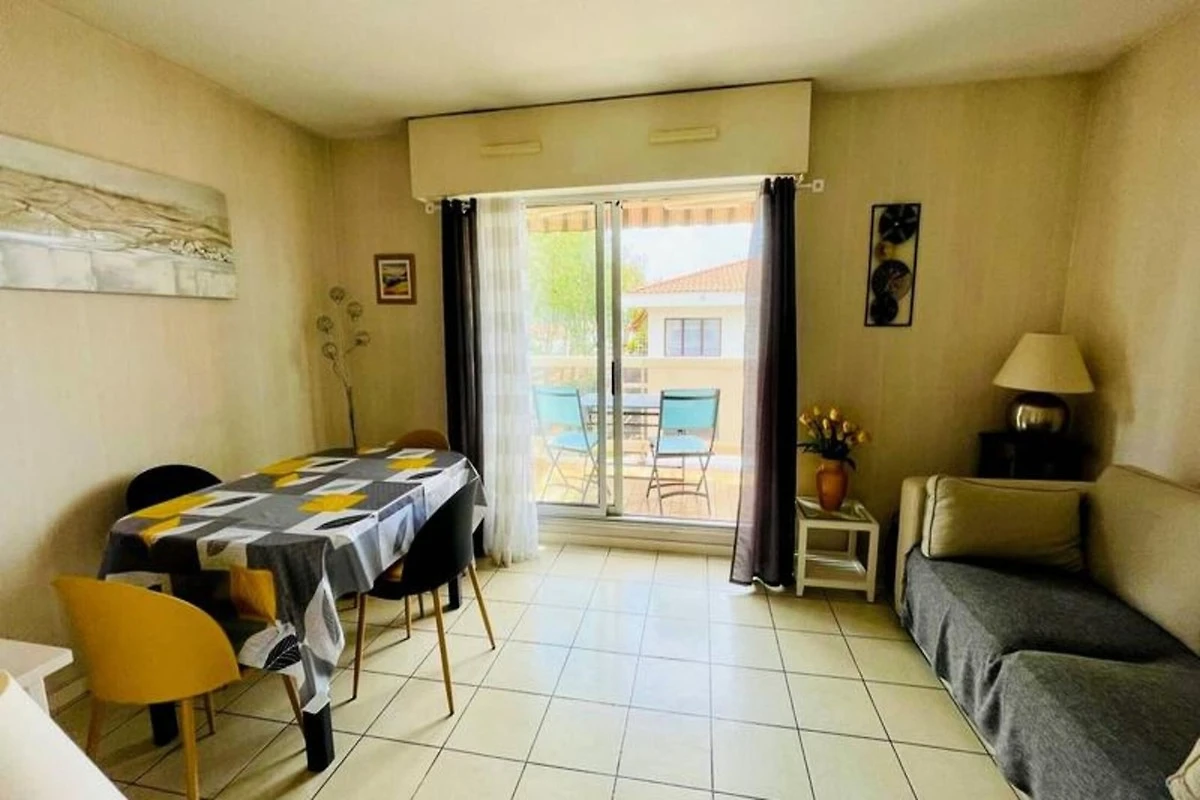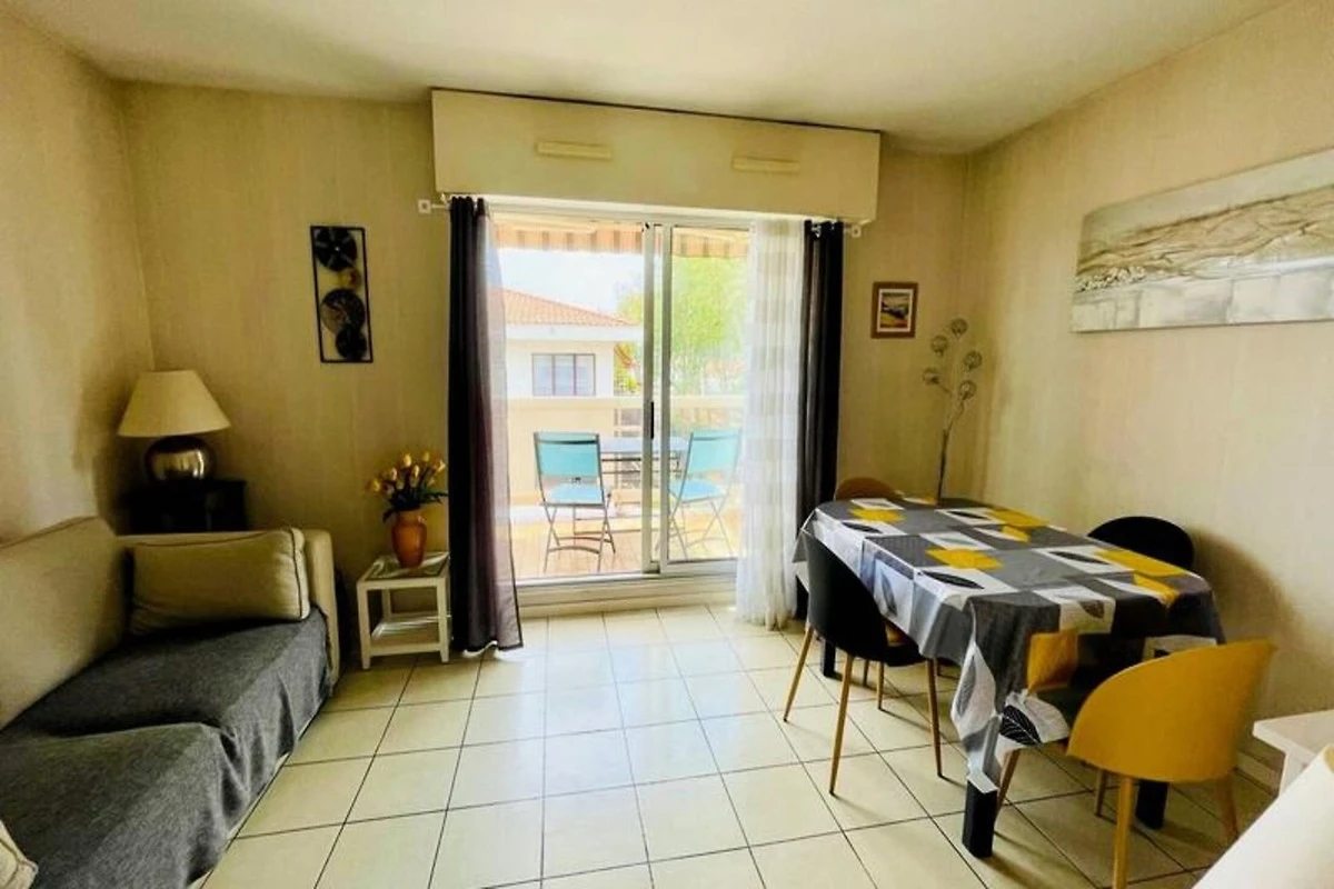De lichte woon- en eetkamer is voorzien van een extra slaapbank, een televisie en een eetruimte en komt uit op een ruim, zonnig terras van 4,5 m² op het zuiden. Dit terras is voorzien van een zonnescherm en tuinmeubilair, ideaal om te genieten van zonnige dagen. Het appartement is goed uitgerust, inclusief verwarming, en door de bevoorrechte locatie bevindt u zich op slechts een korte loopafstand van de stranden van Eyrac (400 meter) en de overdekte markt (600 meter). Voor uw gemak is er ook een nominatieve parkeerplaats voorzien.