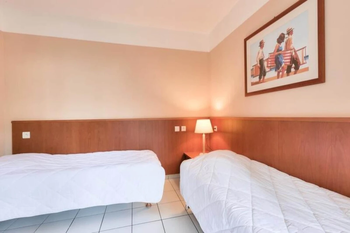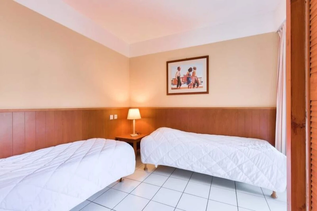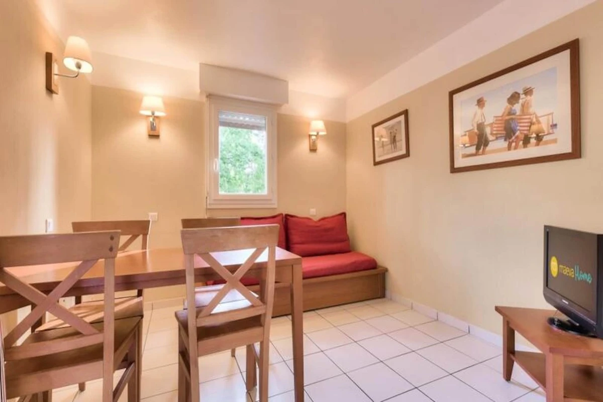 Dit gezellige appartement ligt in het hart van het dennenbos van de Mיdoc en is ideaal voor een ontspannen verblijf met familie of vrienden. De ruimte van 33 m² beschikt over een woonkamer met een slaapbank en een onderschuifbed en biedt voldoende zitplaatsen voor maximaal 3 personen. De volledig uitgeruste keuken en de aparte slaapkamer met twee eenpersoonsbedden maken dit appartement een comfortabele keuze voor kleine groepen of gezinnen. Een eigen badkamer met ligbad, kapstokhaken en opbergruimte zorgen voor extra gemak, terwijl het buitenbalkon met uitzicht op het oosten een rustige plek biedt om tot rust te komen. Er is gratis parkeergelegenheid bij de residentie en in sommige accommodaties zijn huisdieren ook toegestaan, op voorafgaand verzoek.