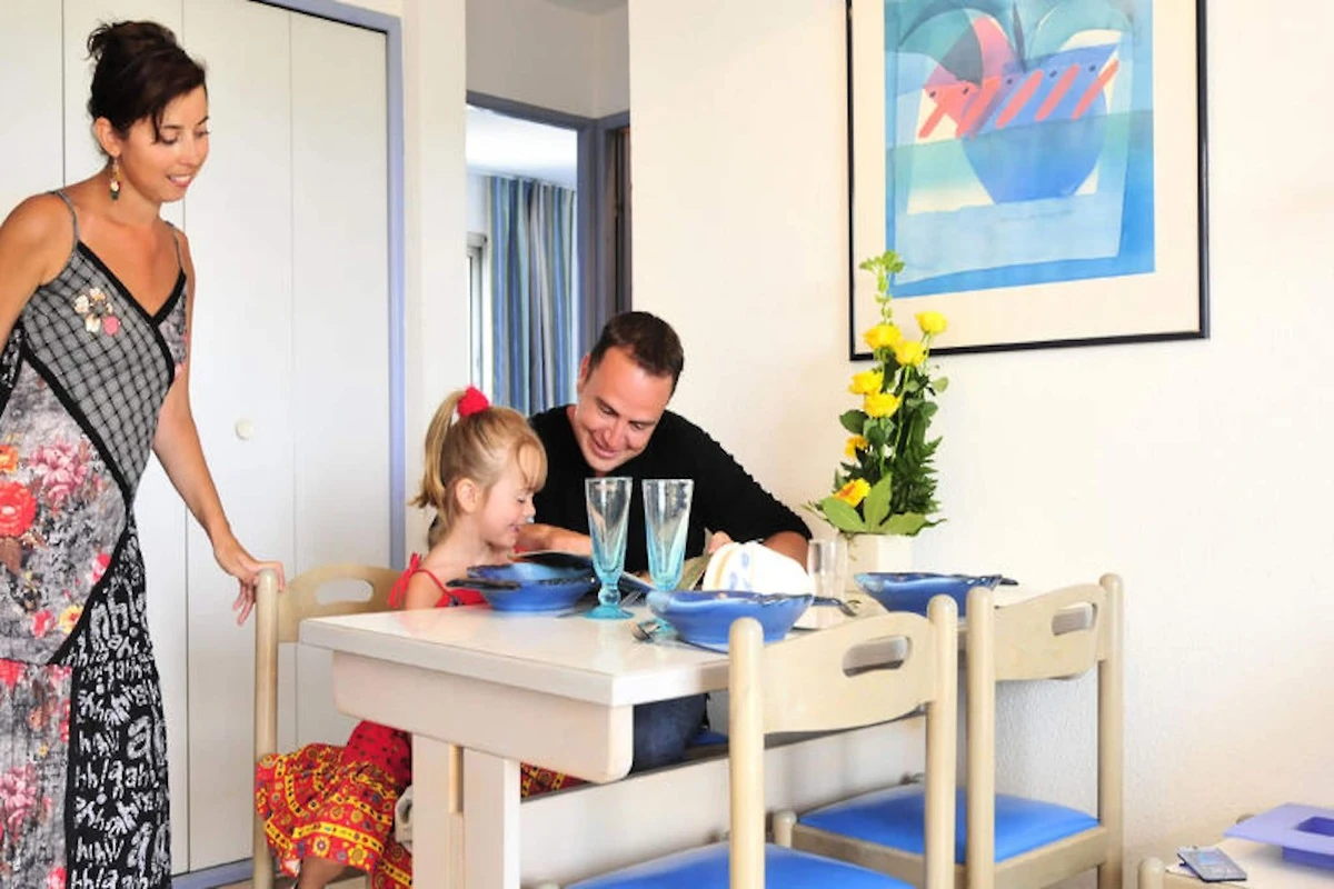 Het appartement beschikt over een volledig uitgeruste kitchenette waar u uw eigen maaltijden kunt bereiden, en een eigen badkamer met een douche of bad. De residentie biedt ook toegang tot een door zonne-energie verwarmd buitenzwembad met kindergedeelte en solarium, ideaal om te genieten van zonnige dagen. Er is een televisie aanwezig, wat het comfort en de entertainmentmogelijkheden tijdens uw verblijf vergroot.