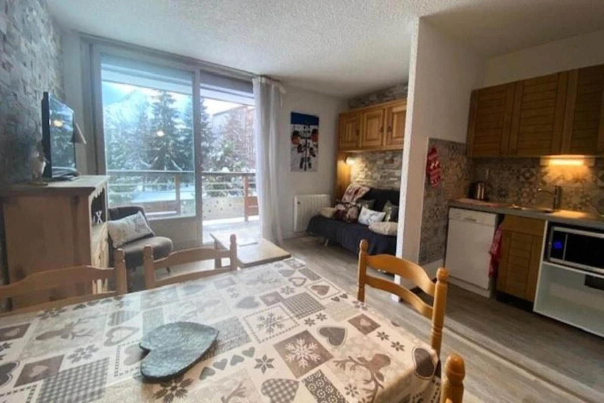 Dompel jezelf onder in het hart van het resort met deze gerenoveerde, ruime en prachtig ingerichte studio, ontworpen voor maximaal 5 gasten. De studio is perfect voor gezinnen of vrienden en beschikt over een gezellig slaapgedeelte in de gang met een stapelbed voor 3 personen, en een woonkamer met een slaapbank van 160 cm, een fauteuil en een inrichting in bergstijl. Een eigen balkon op het zuiden biedt een charmant uitzicht op de binnenplaats, terwijl een eigen skiberging en privéparkeergelegenheid voor extra gemak zorgen. Huisdieren zijn niet toegestaan, waardoor een serene en allergievrije omgeving wordt gegarandeerd.