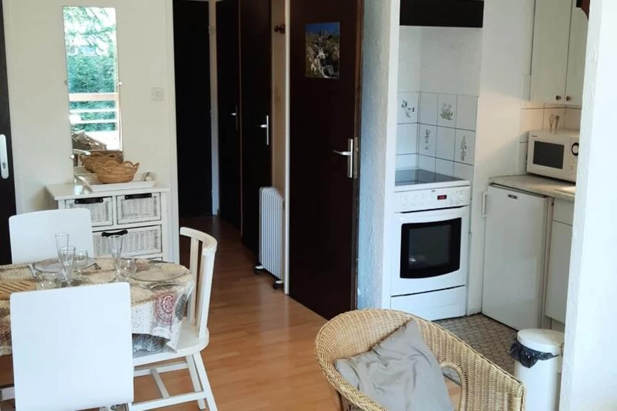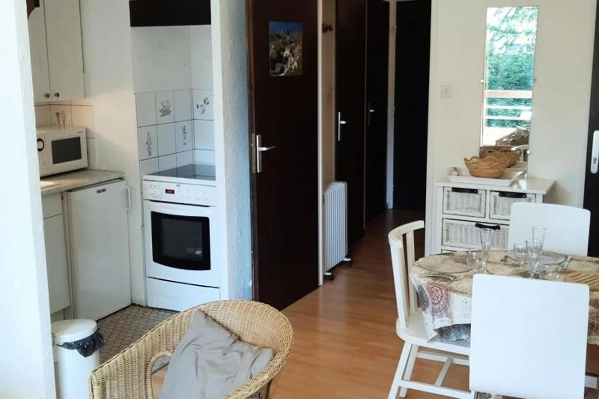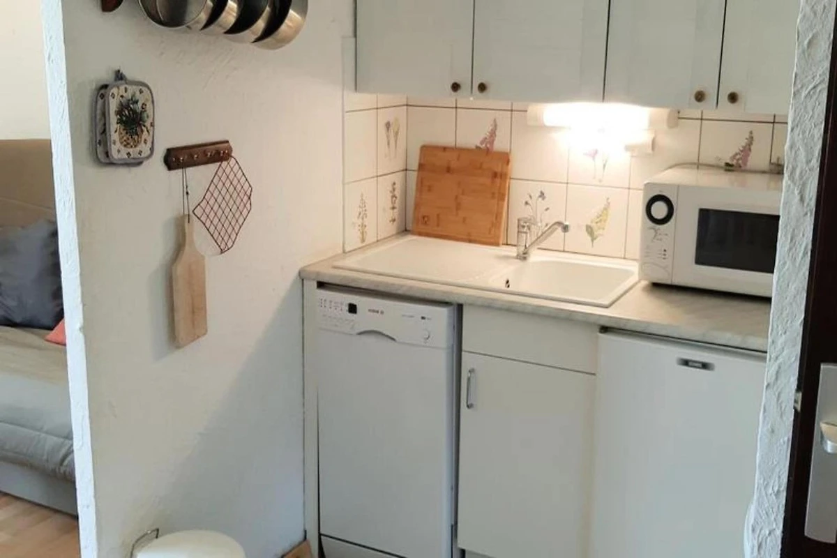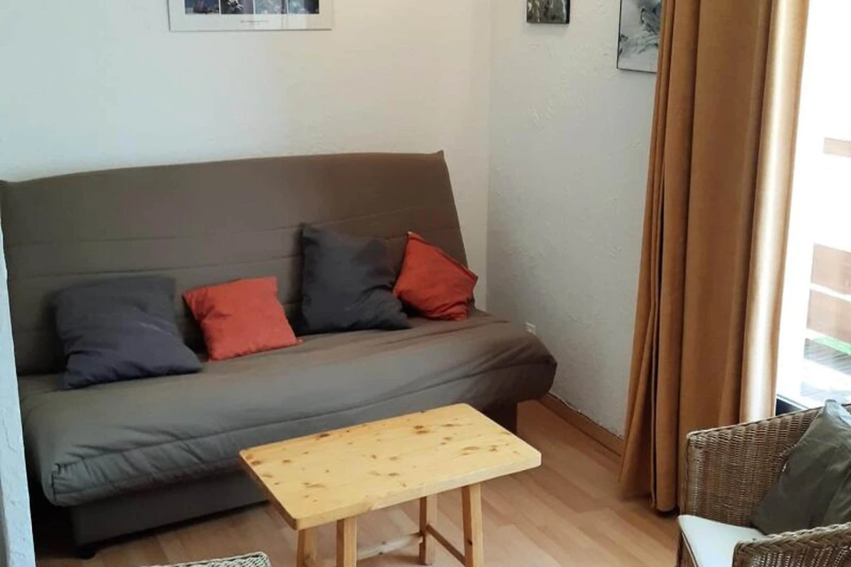Deze studio van 30 m², gelegen op de 2e verdieping van een residentie met lift, biedt plaats aan maximaal 4 personen. Het balkon op het zuiden biedt een prachtig uitzicht op de pistes, ideaal om te genieten van het omliggende landschap. De woonkamer is voorzien van een televisie, een bank en een eethoek met parketvloer, waardoor een comfortabele sfeer ontstaat. De accommodatie is huisdiervrij en beschikt voor uw gemak over een skikluis.