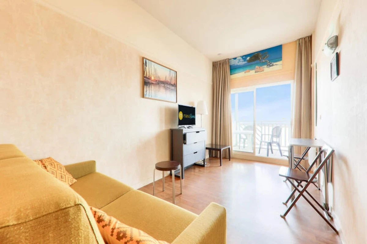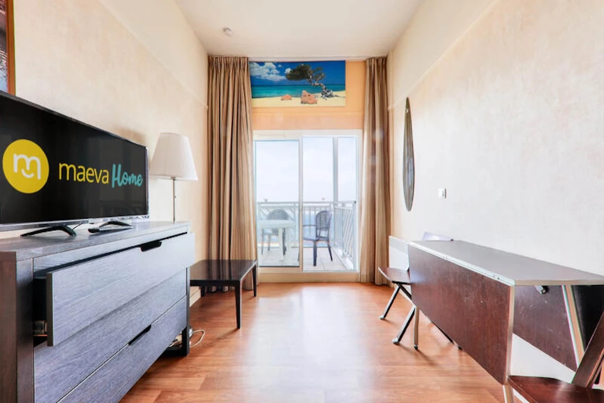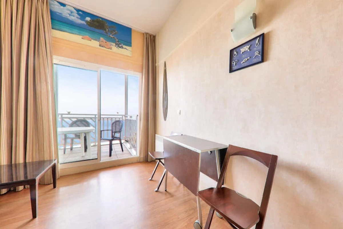 Zalety wynajmu: Bardzo piękne studio z widokiem na morze ze wspólnym basenem, parkingiem i umeblowanym balkonem.