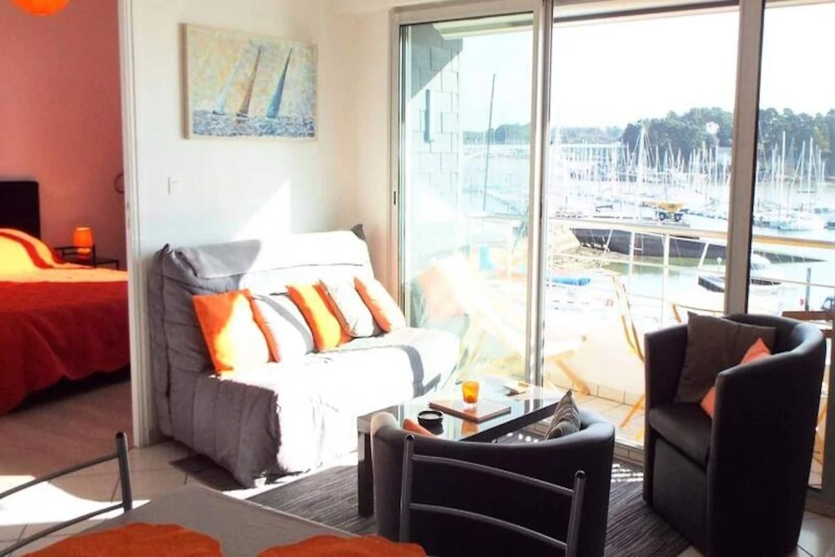 Dit charmante 2-kamerappartement, gelegen in de residentie ETOILE DE L'OCEAN, biedt een comfortabel en gezellig verblijf voor maximaal 4 personen. Gelegen op de 3e verdieping met lift, beschikt het over een lichte woonkamer met eethoek, zithoek met televisie, hifi-systeem, fauteuils en een BZ-bank die kan worden omgevormd tot een bed voor twee personen. De woonkamer komt uit op een klein balkon op het zuidoosten, met een mooi uitzicht op de haven van Trinité-sur-Mer. Verder beschikt het appartement over een ingerichte keuken met moderne apparatuur zoals een 2-pits inductiekookplaat, magnetron, koelkast en vaatwasser, evenals een slaapkamer met een tweepersoonsbed en tv.