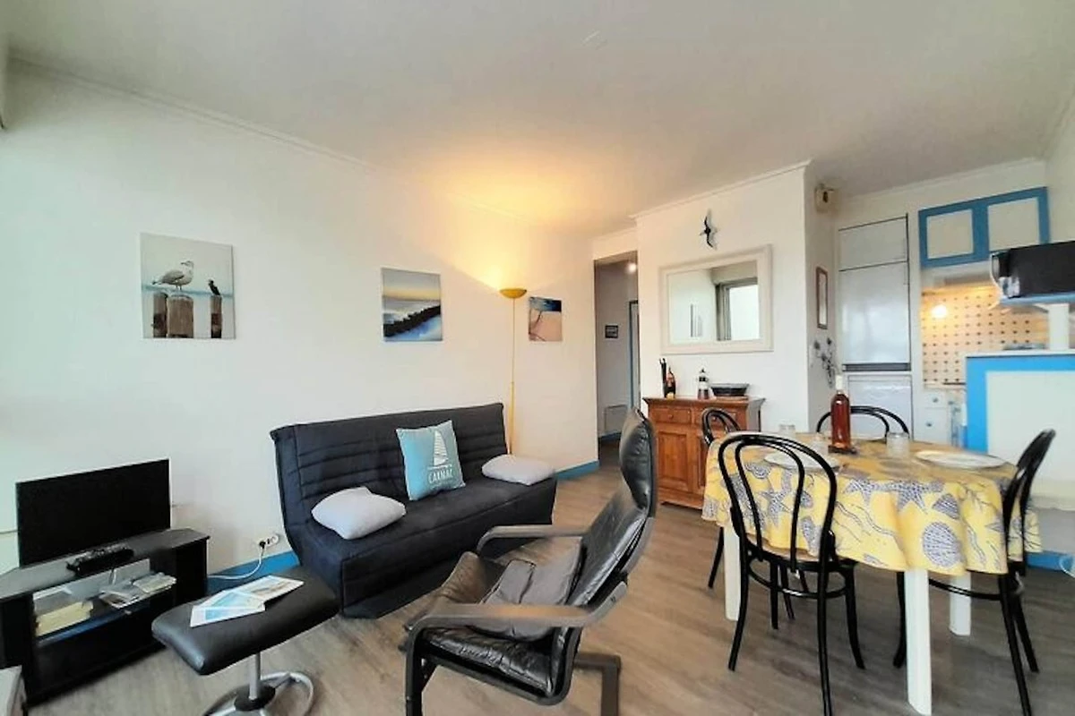 Het appartement ligt in het hart van Trinité-sur-Mer en biedt direct uitzicht op de levendige haven, wat een vleugje rust en maritieme charme toevoegt aan uw verblijf. Op slechts 700 meter van Plage du Port kunt u gemakkelijk genieten van het strand, terwijl nabijgelegen winkels ervoor zorgen dat u moeiteloos toegang heeft tot lokale goederen. Of u nu de haven verkent of door de charmante straatjes slentert, de omgeving biedt een heerlijke selectie aan cafés, markten en restaurants.