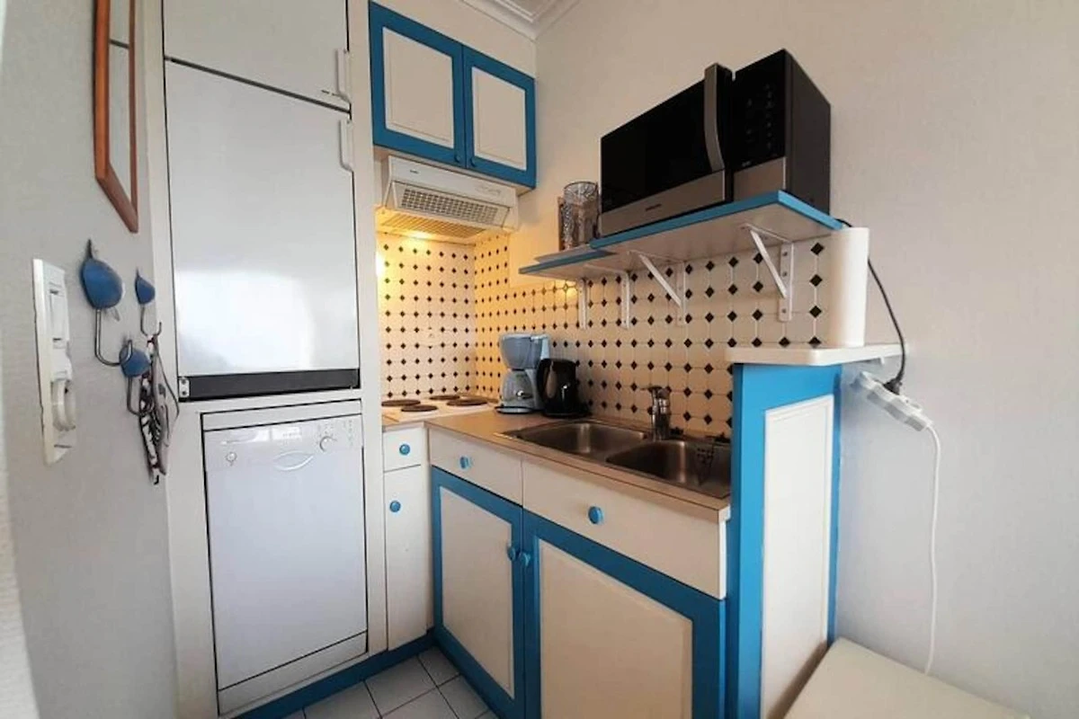 Het appartement is goed uitgerust voor een zelfvoorzienend verblijf met een efficiënte keuken, voorzien van een 4-pits elektrische kookplaat, magnetron, koelkast, vaatwasser en kleine vriezer. Een loggia biedt een buitenruimte om te ontspannen terwijl u geniet van het uitzicht. Extra voorzieningen zijn onder andere parkeergelegenheid, optionele eindschoonmaak, verhuur van linnengoed, kinderopvangapparatuur en een Wi-Fi-minibox voor extra gemak.