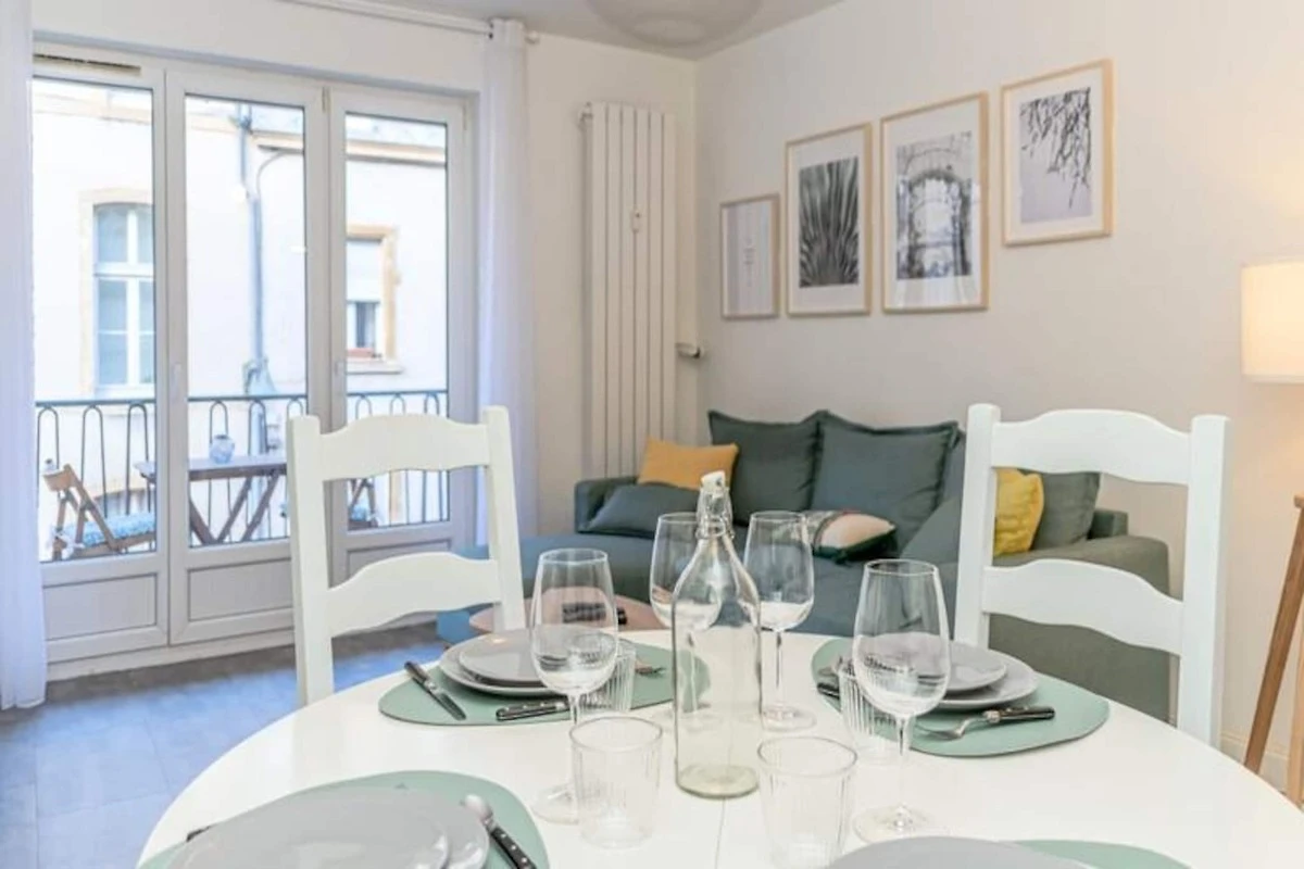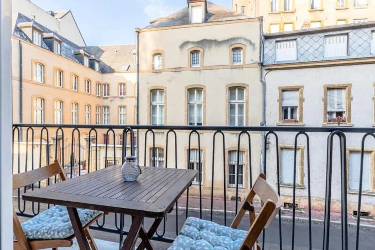 Dit ruime en gastvrije appartement ligt in het hart van Metz en biedt een comfortabel verblijf voor gezinnen of groepen van maximaal vier personen. Het beschikt over een grote woonkamer, twee royale slaapkamers met voldoende opbergruimte en een balkon dat natuurlijk licht in de hoofdruimte brengt. Het appartement is voorzien van beddengoed van hoge kwaliteit en de bedden zijn opgemaakt voor uw aankomst, zodat u verzekerd bent van een rustig verblijf. Voor extra gemak is er een gereserveerde parkeerplaats in het stadscentrum inbegrepen.