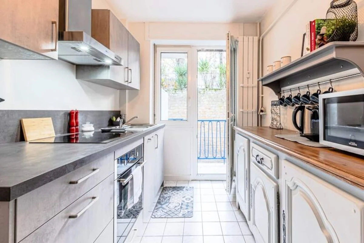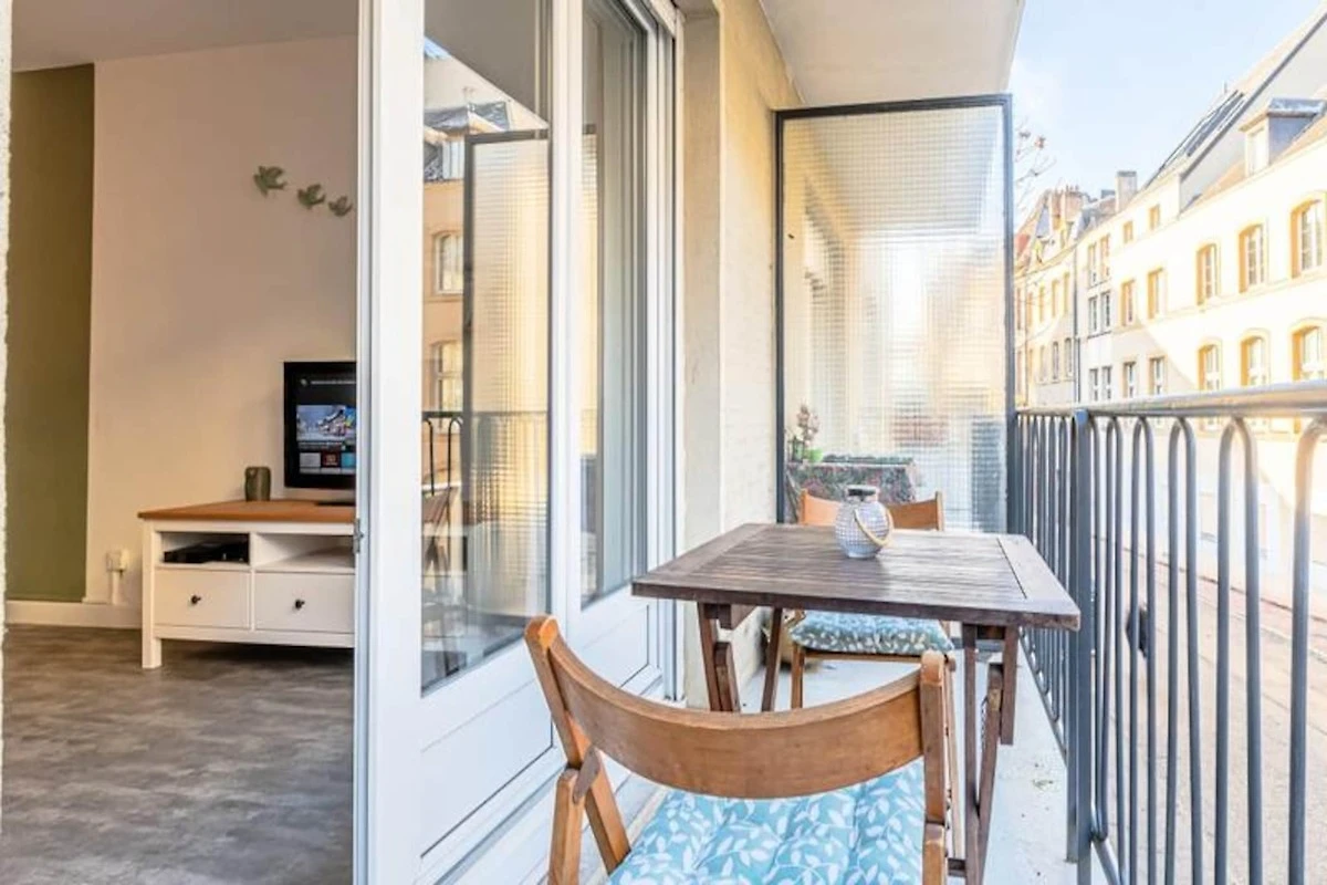 Het appartement ligt op slechts 5 minuten lopen van de belangrijkste pleinen van Metz en op 20 minuten van het treinstation van Metz. Het is ideaal gelegen voor gemakkelijke toegang tot zowel het stadscentrum als de rustige oevers van de Moezel. Geniet van een aangename wandeling langs het kanaal of bezoek nabijgelegen bezienswaardigheden, zoals de Tempel Neuf en de iconische kathedraal van Metz. De omgeving biedt ook een verscheidenheid aan cafés, winkels en restaurants die u tijdens uw verblijf kunt verkennen.