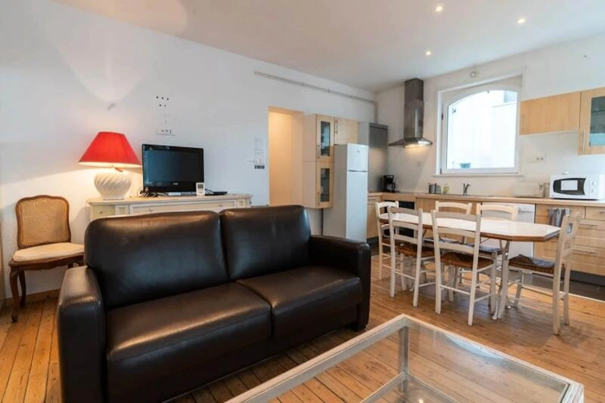 De goed uitgeruste keuken staat in open verbinding met de woonkamer en creëert een warme en uitnodigende ruimte voor gedeelde maaltijden en ontspanning. Uitgerust met essentiële apparatuur en voldoende kasten, zorgt het voor een comfortabele self-catering ervaring. Het appartement bevindt zich op de eerste verdieping van een rustig gebouw zonder lift en biedt een rustig toevluchtsoord met moderne voorzieningen en persoonlijke ondersteuning tijdens uw verblijf.