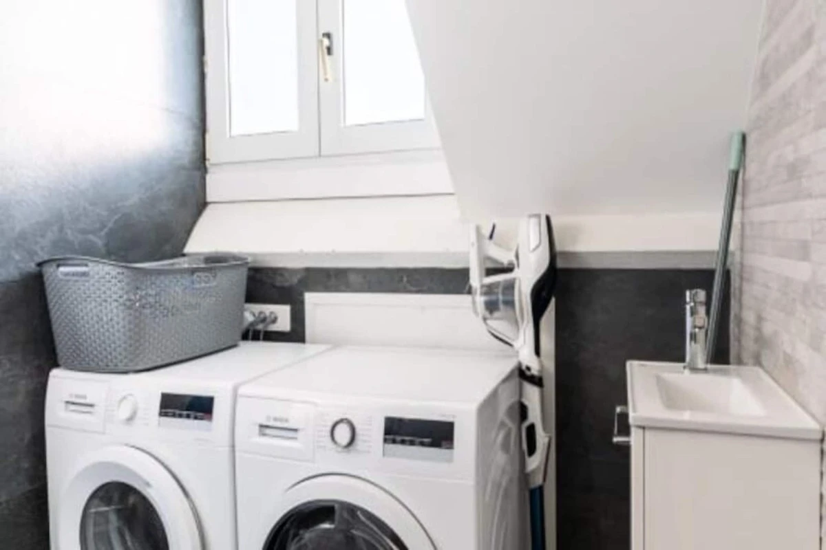 De volledig uitgeruste keuken van het appartement is voorzien van een inductiekookplaat, traditionele ovens, magnetrons en een Nespresso-apparaat, ideaal voor het bereiden van maaltijden op uw gemak. Een wasruimte met wasmachine en droger draagt ??bij aan het praktische karakter van deze stijlvolle ruimte. Grote ramen overspoelen de loft met natuurlijk licht, bieden een glimp van de zee en creëren een serene sfeer voor een ontspannen uitje.