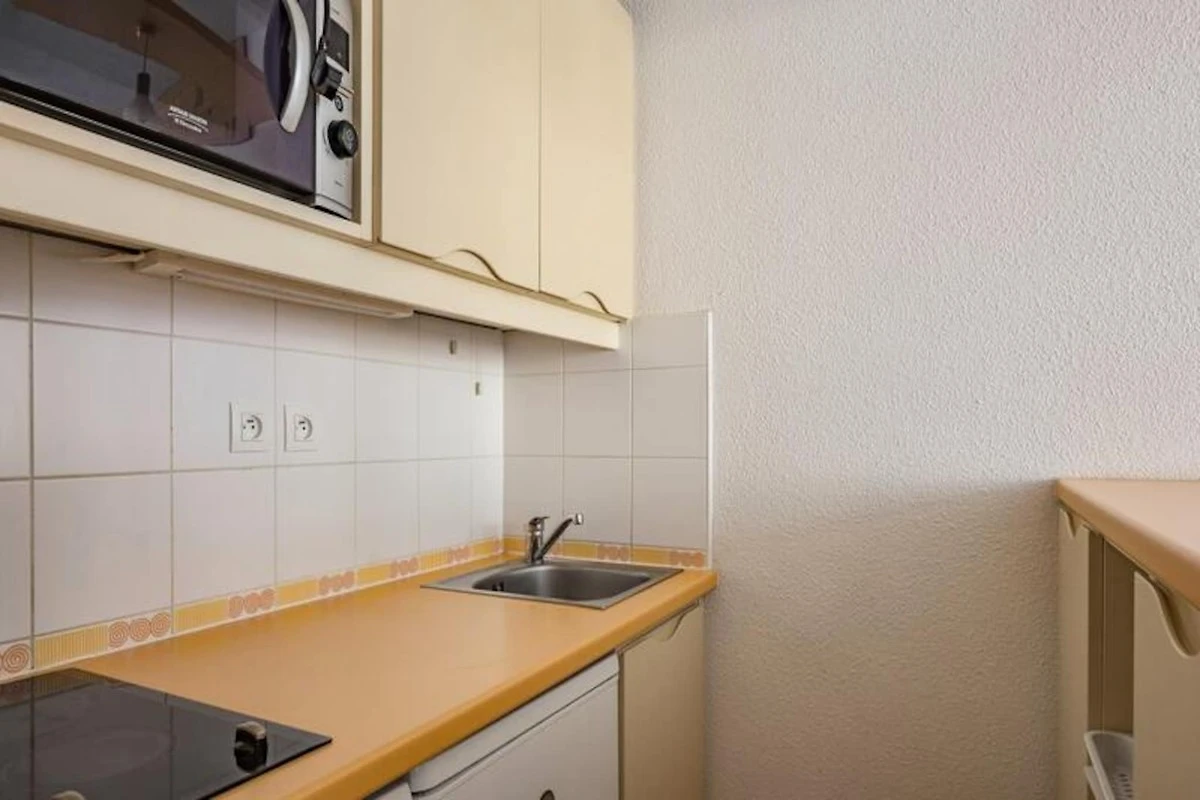 Het appartement is uitgerust met een volledig functionele keuken, ideaal voor het bereiden van maaltijden tijdens uw verblijf. De badkamer is voorzien van een ligbad en voor extra gemak is er een apart toilet. Voor degenen die hun verblijf willen verlengen, biedt de accommodatie de mogelijkheid tot aanvullende diensten, zoals dagelijkse schoonmaak, verschoning van beddengoed en toegang tot de overdekte parkeerplaats, onder voorbehoud van beschikbaarheid. Of u hier nu bent voor een kort bezoek of voor een langere retraite, dit appartement biedt de ideale uitvalsbasis om de regio te verkennen.