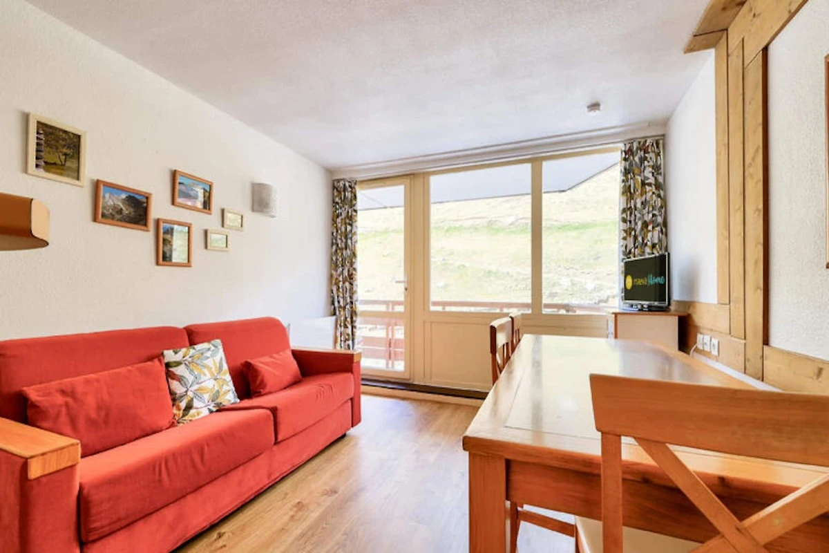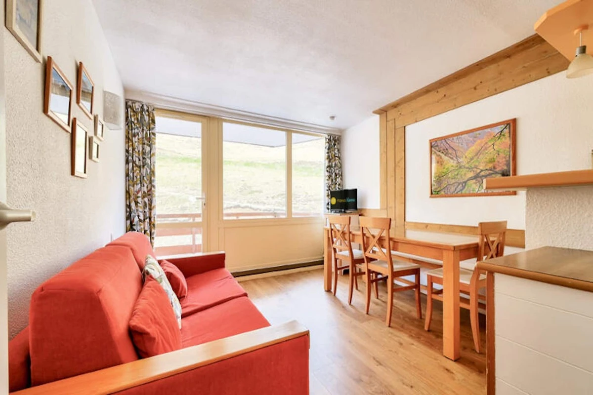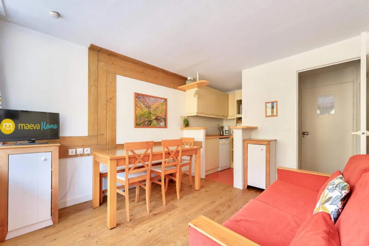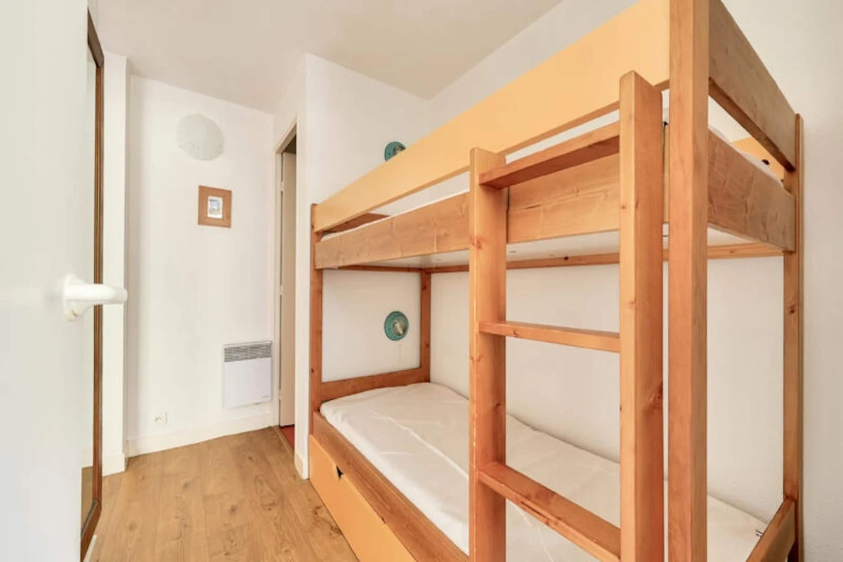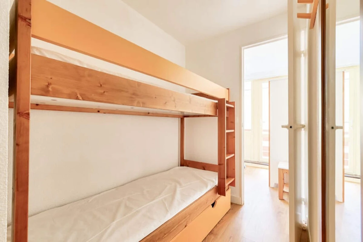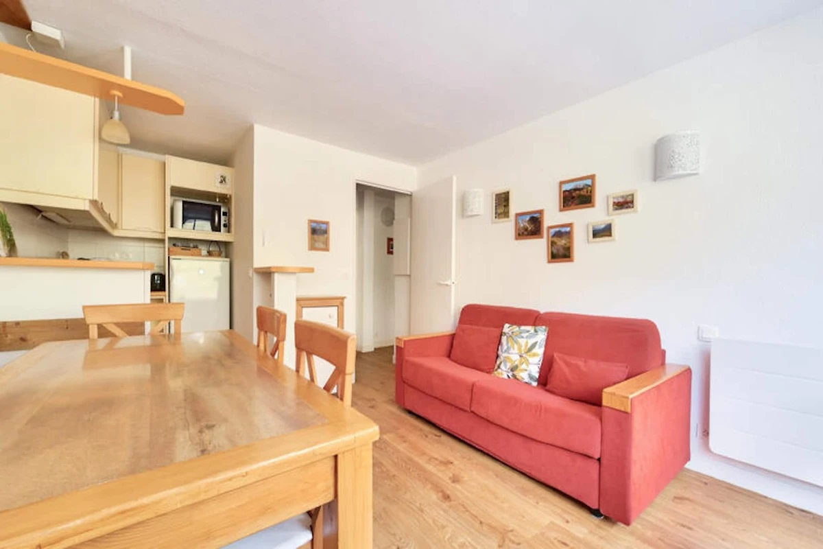 Dit goed uitgeruste appartement biedt een comfortabel verblijf voor maximaal vier personen en beschikt over een woonkamer met een slaapbank en een cabinegedeelte met twee stapelbedden. De slaapkamer is voorzien van twee eenpersoonsbedden, waardoor deze ideaal is voor gezinnen of kleine groepen. De accommodatie is huisdiervriendelijk (tegen een toeslag) en biedt handige voorzieningen, zoals een toegewezen ondergrondse parkeerplaats, een skikluis en een balkon met uitzicht op de bergen. Geniet van moderne gemakken, waaronder een televisie, en ontspan met het comfort van een verzorgde ruimte, perfect voor een vakantie in de Pyreneeën.
