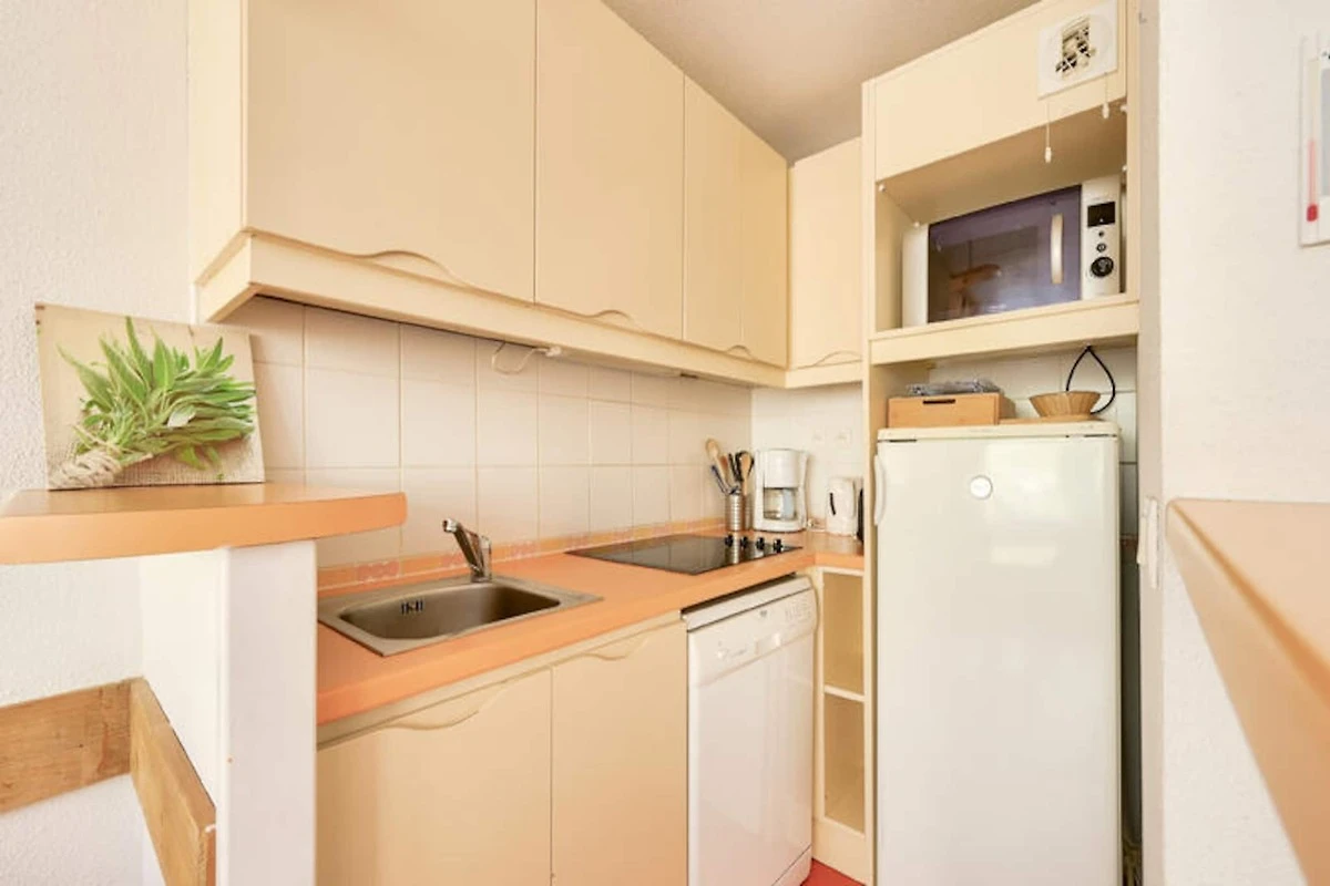 Het appartement ligt op slechts 1 km van het centrum van het resort en biedt gemakkelijke toegang tot een verscheidenheid aan buitenactiviteiten, zoals skiën, wandelen en golfen. Gasten kunnen nabijgelegen wandelpaden verkennen met een prachtig uitzicht op de omliggende bergen, waaronder routes die leiden naar de iconische Col du Tourmalet. Het gebied biedt uitstekende mogelijkheden voor cafés en lokale markten waar bezoekers kunnen genieten van heerlijke regionale gerechten en souvenirs kunnen kopen, waardoor een echte bergervaring wordt gegarandeerd. Het resort beschikt ook over een fitnesscentrum, ideaal om te ontspannen na een avontuurlijke dag.