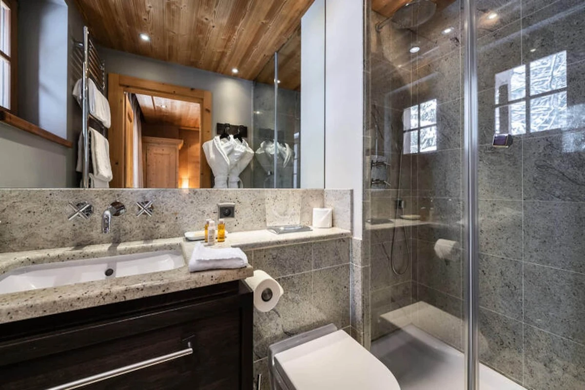 Het chalet is ideaal gelegen nabij de Rochebrune-gondel, waardoor u gemakkelijk toegang heeft tot de pistes en het centrum van Megève. De accommodatie beschikt over een tuin en een terras waar u in een rustige omgeving van het buitenleven kunt genieten. Voor uw gemak beschikt het chalet over een garage voor één auto, een schoenendroger en een wasruimte. Op de tweede verdieping beschikt de woonkamer over een open haard met gesloten haard, omgeven door comfortabele fauteuils en poefs.