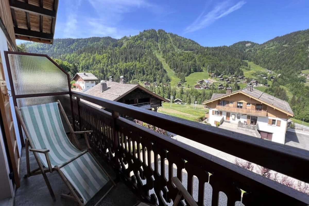 Dit charmante appartement van 49 m², gelegen in een chalet met vier eenheden, biedt een perfect toevluchtsoord voor maximaal 6 personen in de wijk Rochebrune van La Clusaz. Het appartement is op het westen gelegen en biedt een prachtig uitzicht op de bergketens Beauregard, Étale en Riffroids. Het is onlangs gerenoveerd in het najaar van 2024 en beschikt over een gezellige woonkamer met een slaapbank, een volledig uitgeruste keuken met moderne apparatuur en twee comfortabele slaapkamers. De eerste slaapkamer heeft een bed van 140 cm, terwijl de tweede slaapkamer drie bedden van 80 cm biedt, waardoor deze ideaal is voor gezinnen of groepen. De badkamer is voorzien van een douche en wastafel en er is een apart toilet. Gasten kunnen ontspannen op het balkon, dat toegankelijk is vanuit zowel de woonkamer als de slaapkamer, en genieten van het prachtige uitzicht op de bergen.