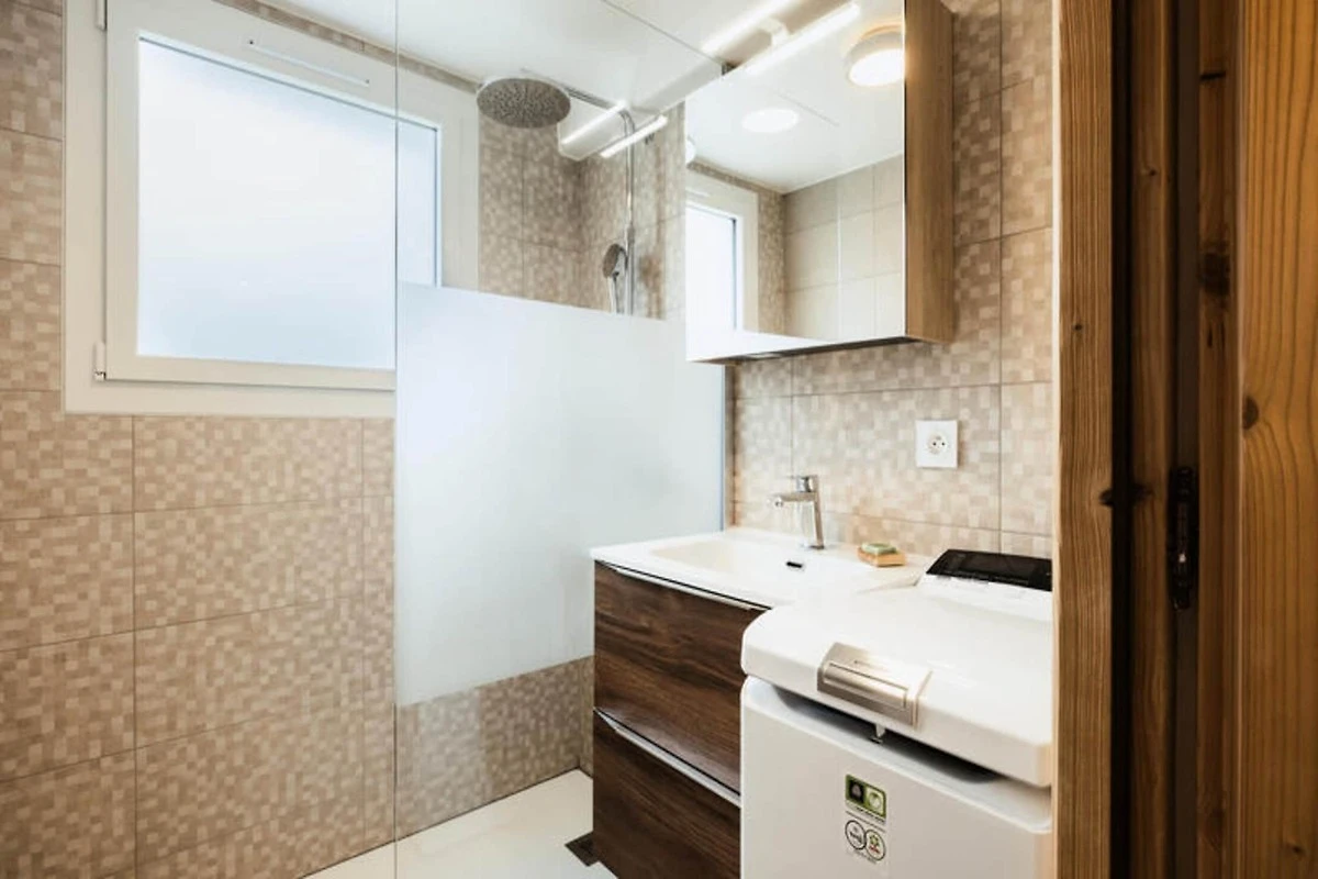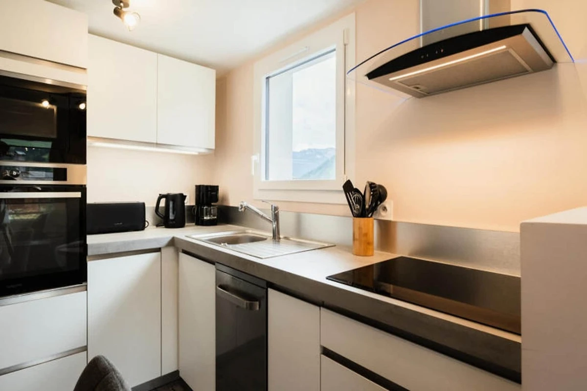 Het appartement is voorzien van een goed uitgeruste keuken met een koel-vriescombinatie, oven, inductiekookplaat, magnetron en vaatwasser, ideaal voor het bereiden van maaltijden. De accommodatie beschikt over een parkeergarage en een skikluis waar de gasten hun uitrusting kunnen opbergen. Extra voorzieningen zoals een wasmachine, handdoekdroger en centrale verwarming door radiatoren zorgen voor een comfortabel verblijf. Het appartement is gelegen op de eerste verdieping en is bereikbaar via een buitentrap.
