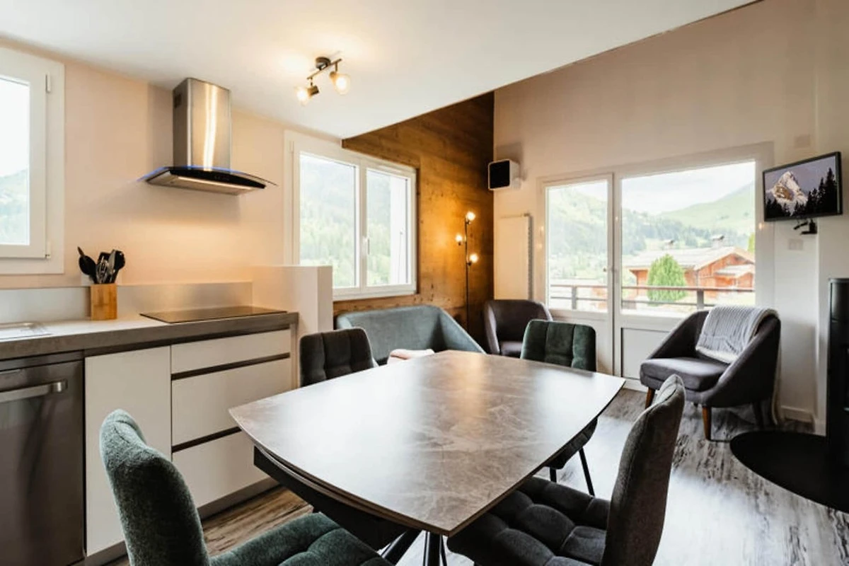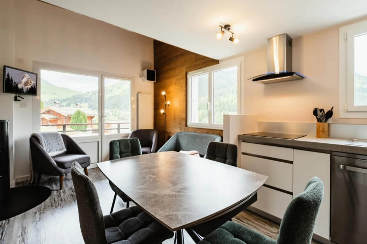 Deze woning, een prachtig gerenoveerd en gezellig appartement, is ontworpen voor maximaal 6 personen. Het beschikt over 3 kamers en een tussenverdieping, waardoor er voldoende ruimte is voor de gasten. De woonkamer is ingericht met een comfortabele bank en een flatscreen-tv, terwijl de mezzanine is voorzien van een Rapido-slaapbank, die extra slaapplaatsen biedt. Het appartement beschikt ook over een hoekbalkon op het zuidwesten met een schilderachtig uitzicht op de bergen en de aangrenzende woningen. Voor uw gemak zijn beddengoed, dekbedovertrekken, lakens en kussenslopen aanwezig. De accommodatie is rook- en huisdiervrij.