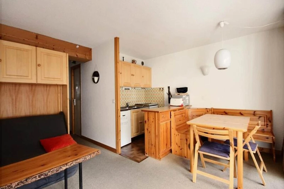 De studio beschikt over een goed uitgeruste keuken met een 2-pits inductiekookplaat, oven, koelkast met vriesvak, magnetron en vaatwasser. Er is ook een racletteapparaat voor 6 personen beschikbaar, perfect voor een après-ski-traktatie. De badkamer is voorzien van een ligbad, wastafel en toilet. Een klein balkon met twee ligstoelen nodigt u uit om te ontspannen en te genieten van het uitzicht. Voor extra gemak beschikt het appartement ook over een kelder en een collectieve parkeerplaats.