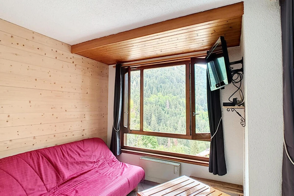 Deze studio ligt op slechts 50 meter van de skiliften en biedt gemakkelijke toegang tot skiën, wandelen en andere buitenactiviteiten. De ESF-skischool en lokale winkels zijn vlakbij, terwijl restaurants en bars in het dorp op loopafstand liggen, waardoor er voldoende eet- en winkelmogelijkheden zijn. Of u nu de piste op wilt of de lokale cultuur wilt verkennen, alles is binnen handbereik. De accommodatie ligt ook op slechts 10 tot 15 minuten rijden van de wijk Portes du Soleil.