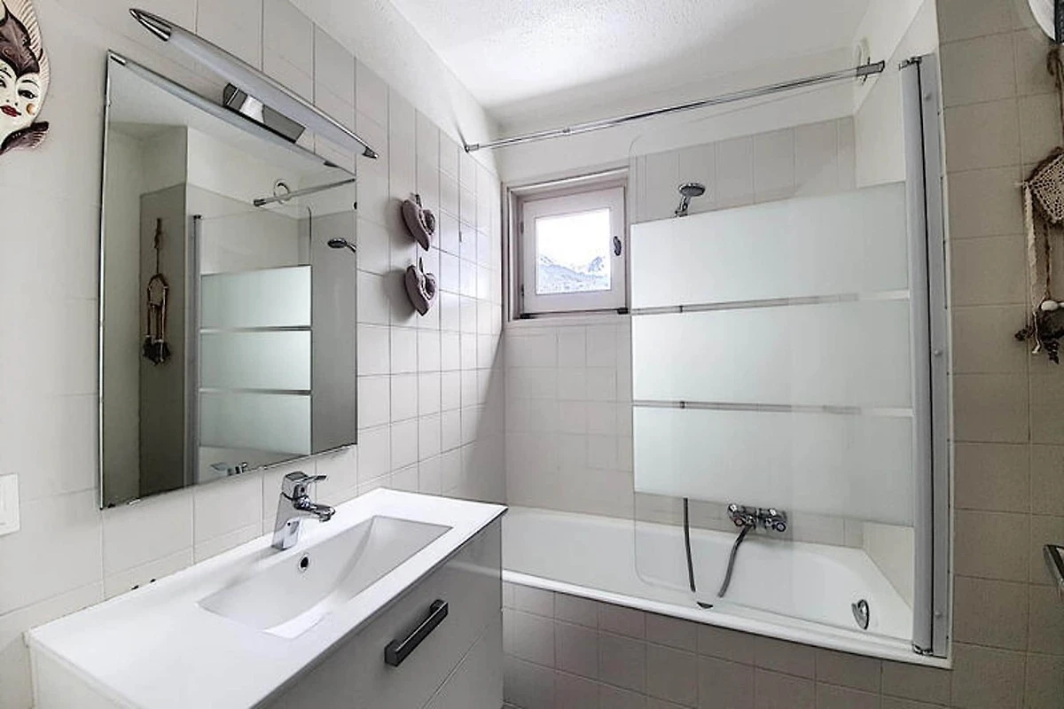De studio beschikt over een volledig uitgeruste keuken met essentiële apparatuur, waaronder een oven, filterkoffiezetapparaat, elektrische kookplaat en koelkast, waardoor u gemakkelijk maaltijden kunt bereiden. De onafhankelijke badkamer is voorzien van een ligbad, wastafel en toilet. Gasten kunnen genieten van tuinmeubilair op het balkon op het zuidoosten, dat een prachtig uitzicht biedt op de parkeerplaats en de skipistes. Extra voorzieningen zijn onder andere een skiruimte, gemeenschappelijke parkeergelegenheid en elke dag toegang tot het zwembad van 08.00 uur tot 20.00 uur.