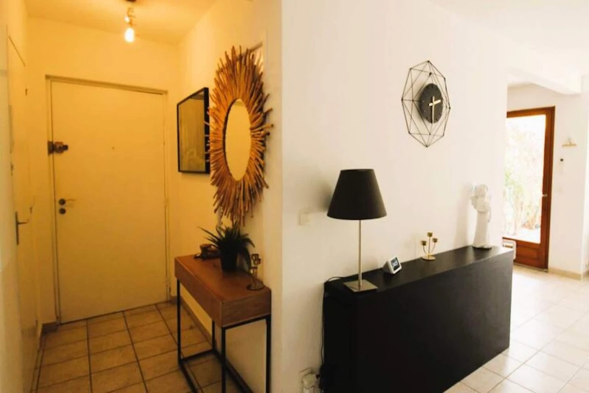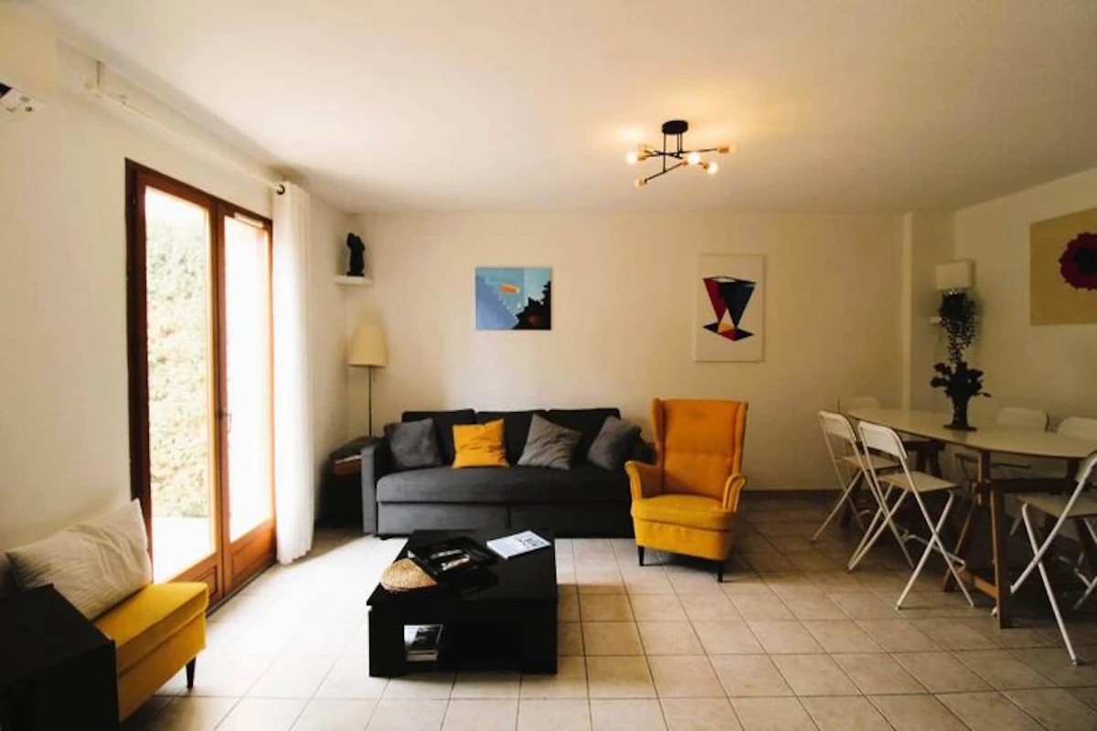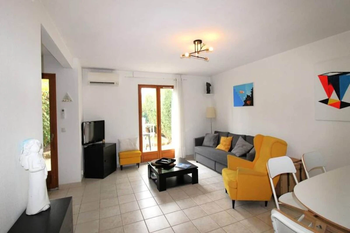Dit elegante triplex vakantiehuis biedt een rustig toevluchtsoord in een privי, beveiligde residentie met toegang tot een gedeeld zwembad. De accommodatie heeft een oppervlakte van 110 m² en beschikt over een tuin en een ruime woon-/eetkamer met airconditioning. De open keuken vloeit naadloos over in een terras en tuin, perfect om buiten te ontspannen. Op de eerste verdieping bevinden zich drie uitnodigende slaapkamers: twee met een tweepersoonsbed (140x200 cm) en ייn met een queensize bed (160x200 cm), die uitkomt op een privיterras. Op de bovenste verdieping zorgen een slaapbank (140x200 cm) en een eigen badkamer met douche en toilet voor extra comfort. Linnengoed kan op verzoek worden geregeld, zodat alle gasten een comfortabel verblijf hebben.