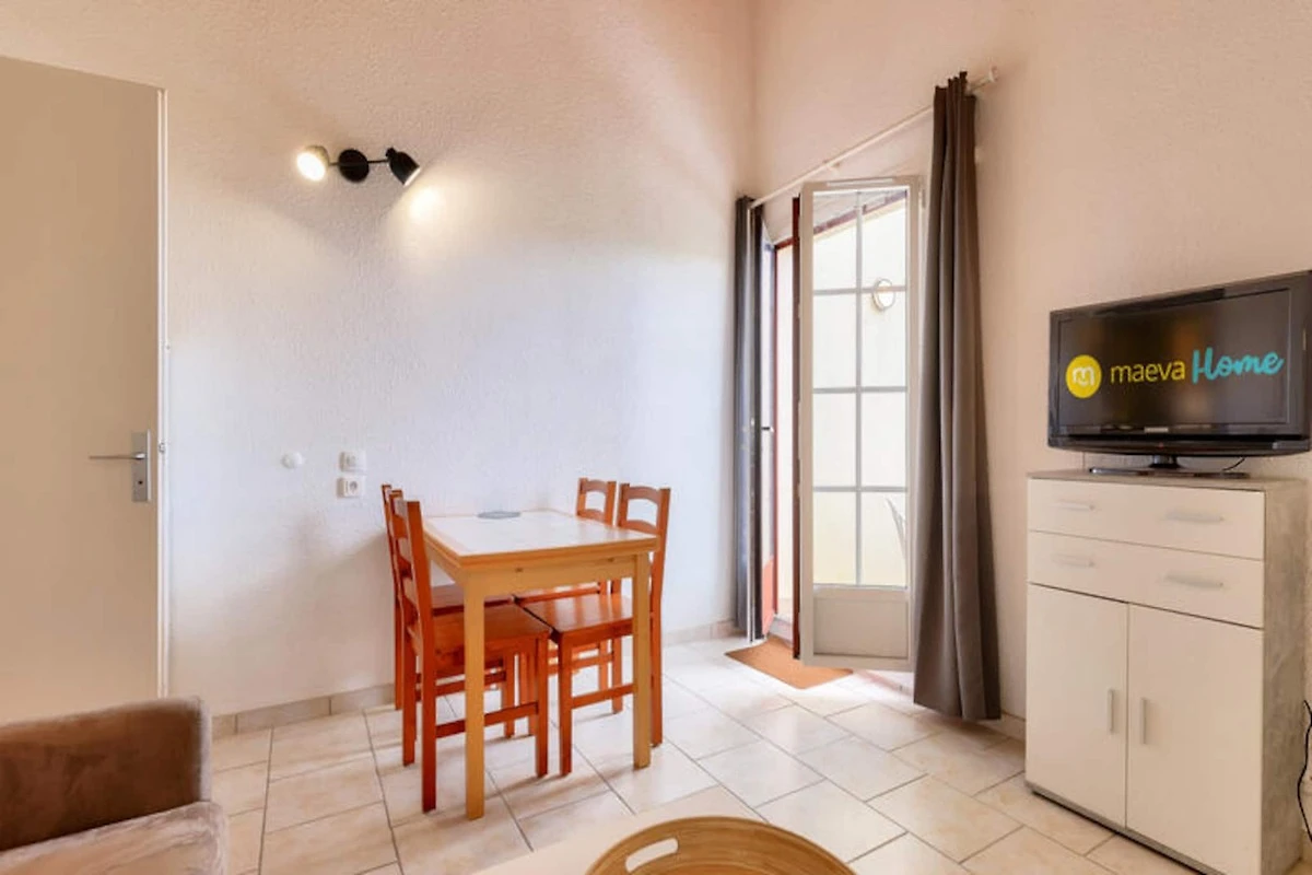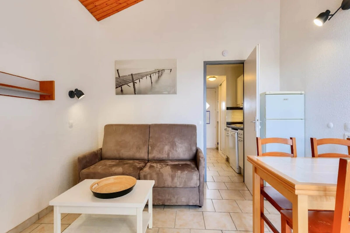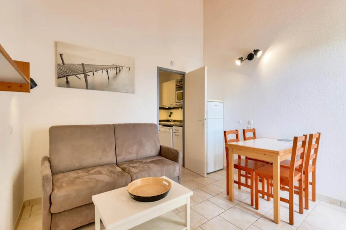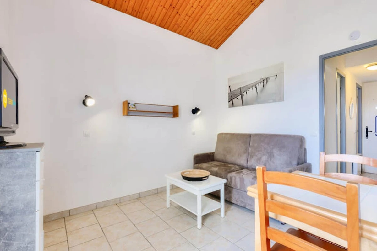 Het appartement beschikt over een volledig uitgeruste keuken waar u maaltijden kunt bereiden, en een apart toilet voor extra gemak. De residentie biedt gratis parkeergelegenheid en gasten hebben toegang tot verwarmde zwembaden en een watergebied met glijbanen en peuterbaden. Extra voorzieningen zijn onder andere Wi-Fi (tegen betaling), een televisie en diverse recreatieve mogelijkheden, zoals minigolf en tennis.
