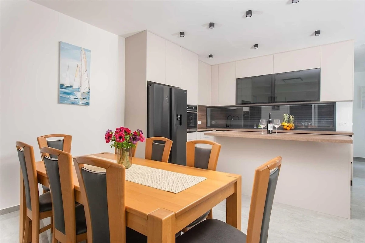 Cafés, bakkerijen en bars zijn op loopafstand. De stranden liggen dichtbij genoeg voor spontane zwempartijen. Als de groep meer wil, zijn Split voor het nachtleven of Trogir voor een drankje bij zonsondergang een makkelijke keuze.