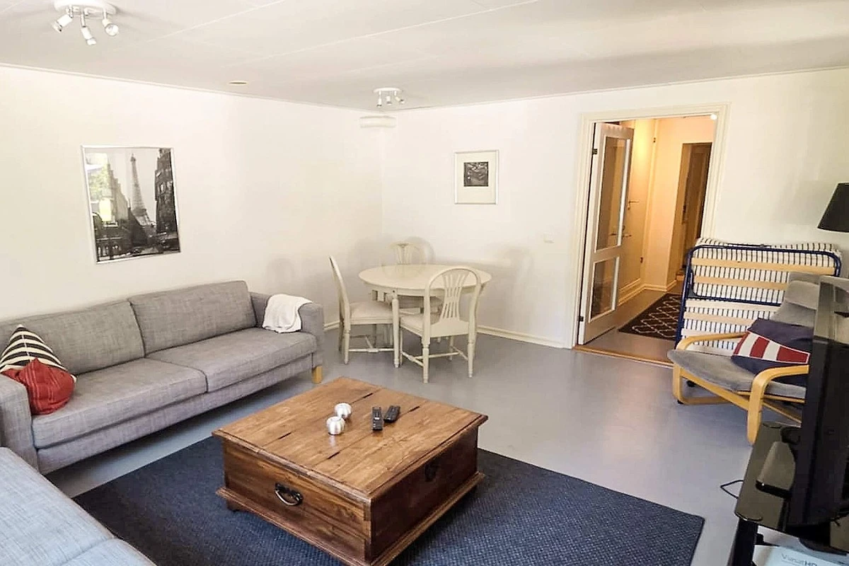 , keuken(kachel(inductie), koffiezetapparaat, oven, magnetron, afwasmachine, koelkast, koel-/vriescombinatie, water uit de put), keuken(kachel(inductie), oven, magnetron, koel-/vriescombinatie), woon/slaapkamer(TV(zweedse TV zenders)), woon/slaapkamer(TV(zweedse TV zenders)), slaapkamer(2x 1-pers. bed), slaapkamer(2-pers. bed), slaapkamer(2-pers. bed), slaapkamer(2-pers. bed), slaapkamer(2x 1-pers. bed), slaapkamer(2-pers. bed, ledikant), badkamer(wasbak, douche, toilet), badkamer(wasbak, douche, toilet), badkamer(wasbak, douche, toilet), veranda, wasdroger, bubbelbad(buiten, verwarmd, 6 personen), sauna(buiten, 8 personen), wasmachine, terras, tuinmeubilair, tuinmeubilair, parking, ligstoelen, zwembad(buiten)