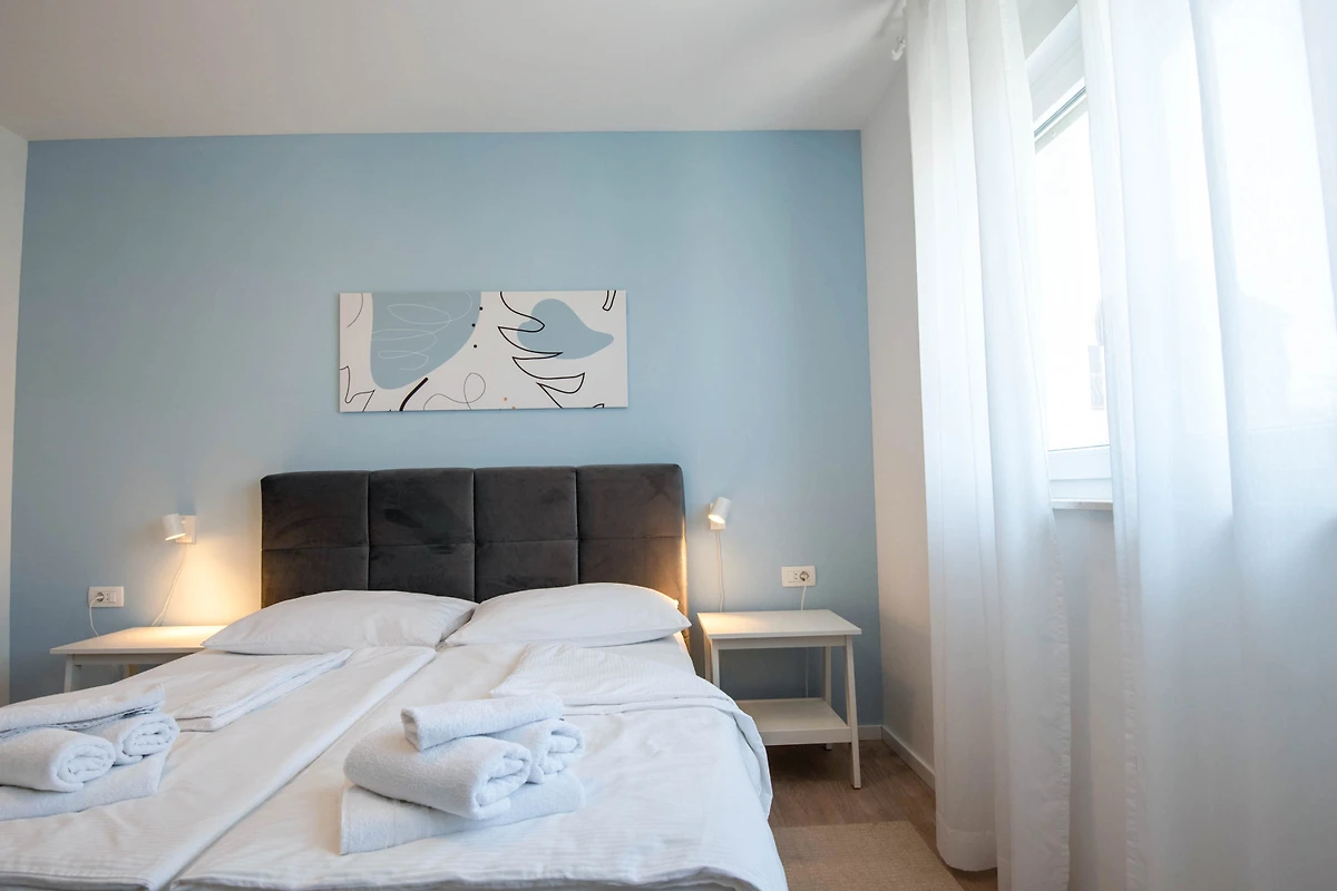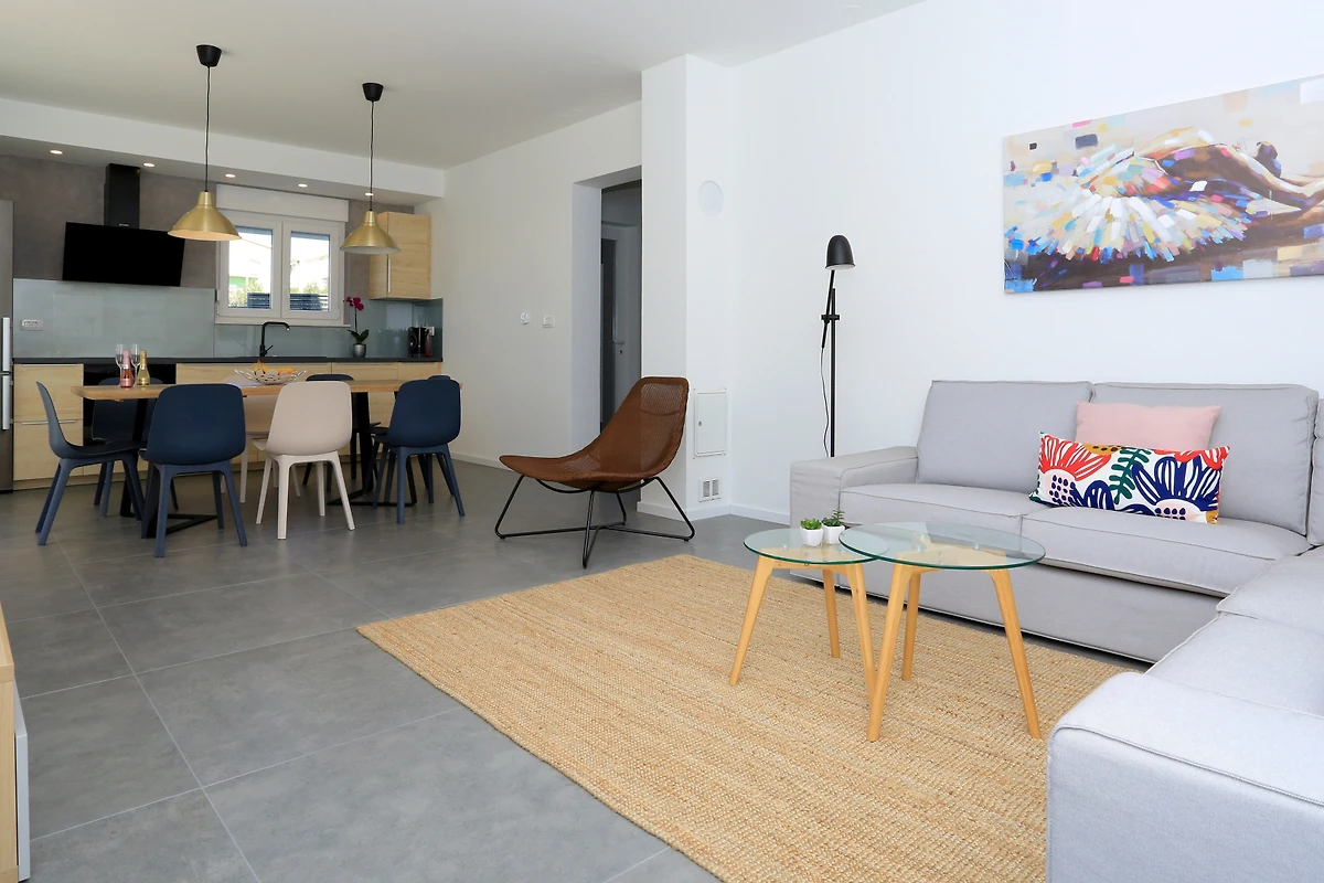 De woning bevindt zich op 600 m van het zandstrand "Brodarica", 2 km van de supermarkt "Ražine", 6 km van het dorp "Šibenik", 50 km van de luchthaven "Split" en is gelegen in een gebied met de volgende kenmerken goed bereikbare wijk zone en in een woonwijk.