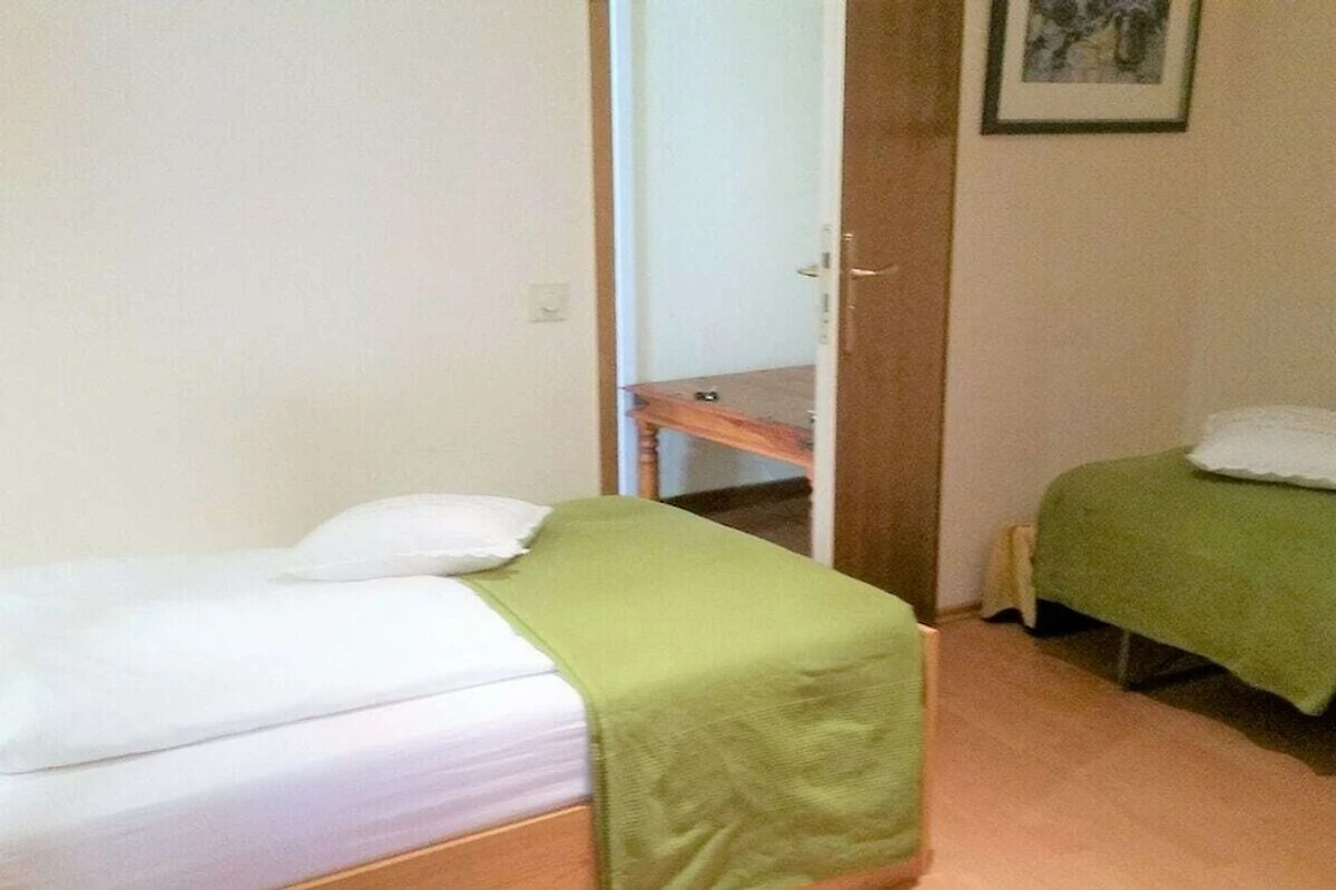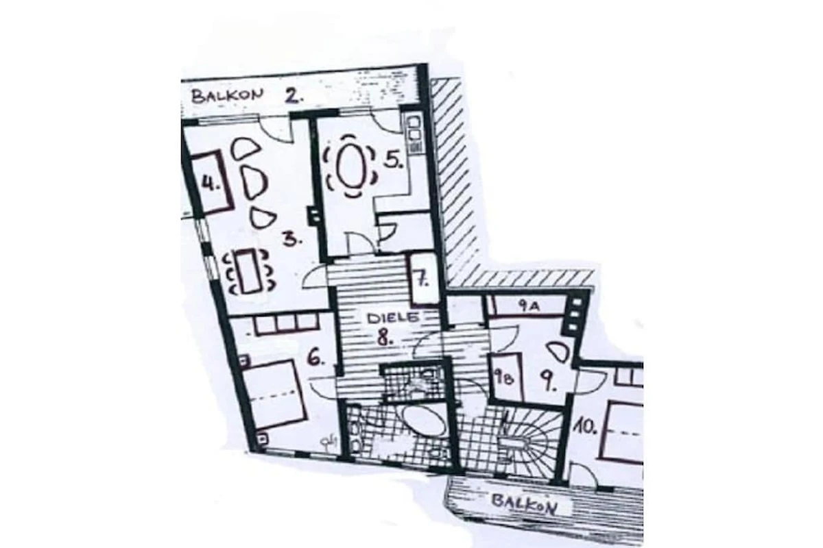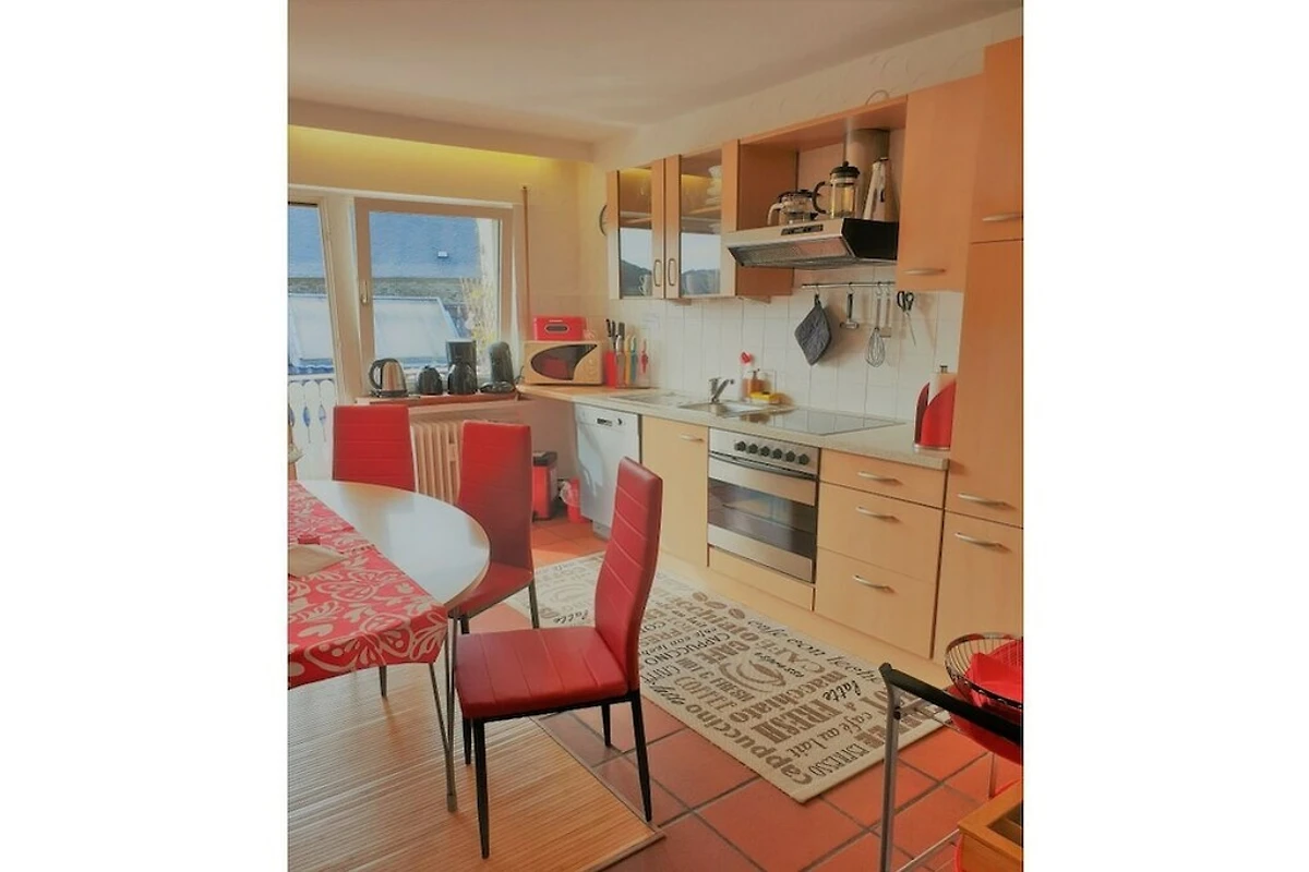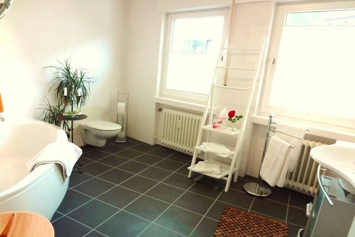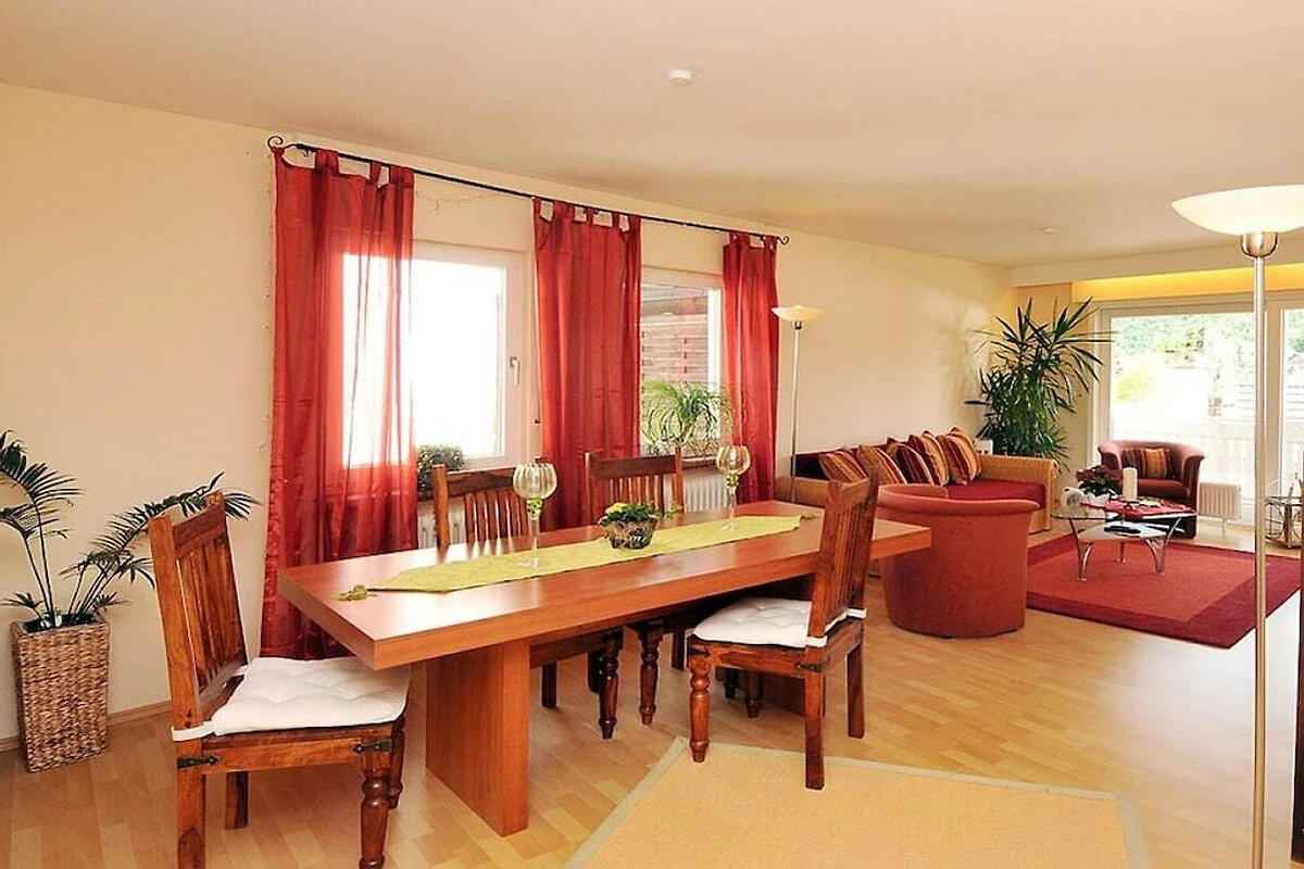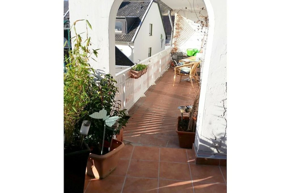 Het moderne appartement van 130 m² beschikt over twee aparte slaapkamers, een tussenkamer met twee eenpersoonsbedden, een gecombineerd woon- en slaapgedeelte, een grote badkamer met hoekbad, een extra gastentoilet, een volledig uitgeruste keuken, een ruime woonkamer met satelliet-tv en dvd-speler en een balkon van 50 m² met een prachtig panoramisch uitzicht over Dernau.