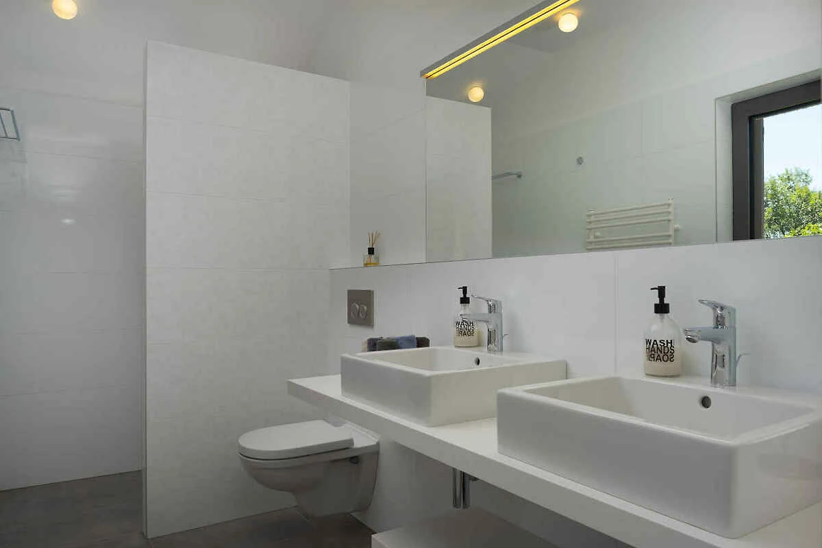 1.verdieping: recreatieruimte met 2 extra bedden en zithoek. slaapkamer met 1 tweepersoonsbed. U heeft toegang tot het balkon. slaapkamer met 1 tweepersoonsbed en 2 ledikanten. U heeft toegang tot het balkon. slaapkamer met 2 tweepersoonsbedden. U heeft toegang tot het balkon. 2 badkamer elk met douche, WC, bidet en venster. badkamer met badkuip, douche, WC, bidet en venster.