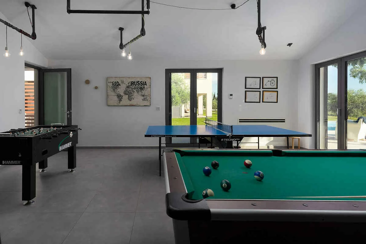 Uw vakantiehuis: Uw villa heeft 2 verdiepingen, 6 kamers (daarvan 4 slaapkamers), is 600 m² groot en is geschikt voor maximaal 12 personen. Roken is binnen niet toegestaan. Een airconditioning zorgt op hete dagen voor een aangename temperatuur. Op koude dagen kan uw villa verwarmd worden met een elektrische verwarming en vloerverwarming. De ingang is gelijkvloers en leidt direct in de gang. De indeling van de kamers is als volgt: