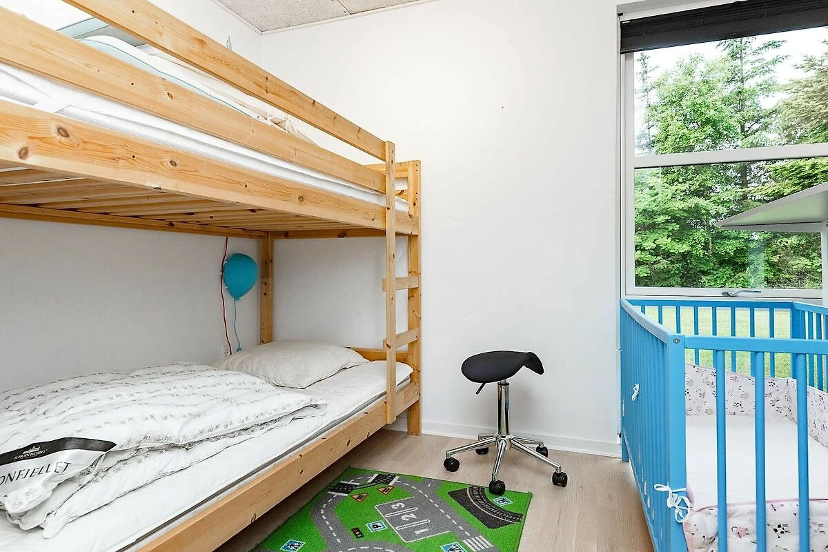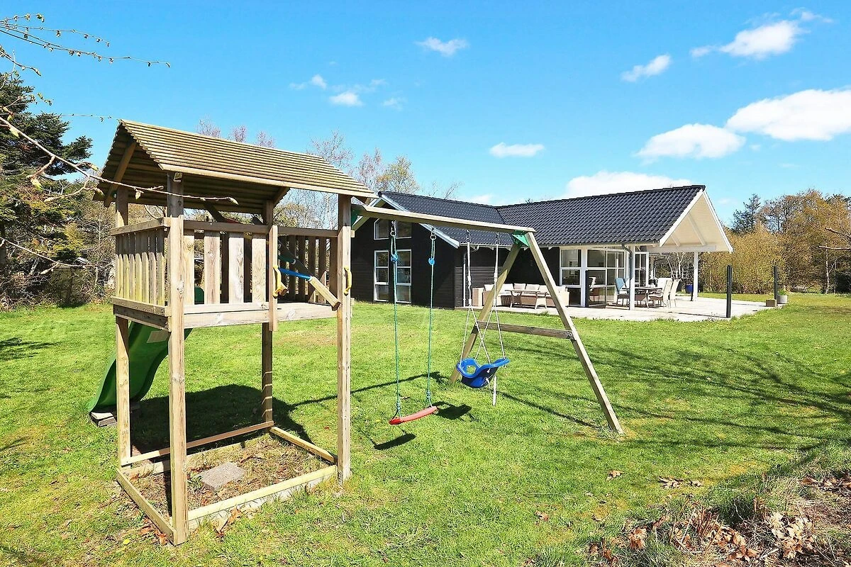, woonkamer, keuken(kachel(inductie), koffiezetapparaat, oven, magnetron, koel-/vriescombinatie), woon/slaapkamer(TV, chromecast), slaapkamer(2-pers. bed), slaapkamer(2-pers. bed, ledikant, kinderstoel), slaapkamer(2x 1-pers. bed), slaapkamer(2x stapelbed, TV, spelcomputer), badkamer(wasdroger, wasbak, douche, toilet, wasmachine), badkamer(wasbak, douche, toilet), bubbelbad(in huis, 2 personen), verwarming(elektrisch), terras, tuin, tuinmeubilair, ligstoelen, speeltoestellen, lucht-water warmtepomp