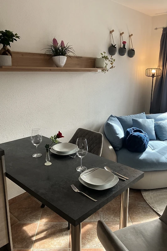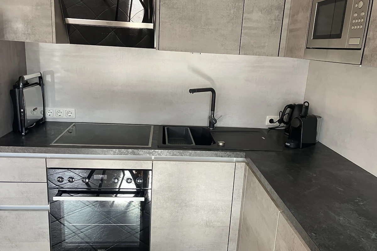 De woonkeuken is hoogwaardig uitgerust: keramische kookplaat, oven, koelkast, waterkoker, servies, schoonmaakmiddelen en een Senseo-capsulemachine. De woonkamer nodigt uit tot ontspannen uren met een bank, eettafel en flatscreen-tv.