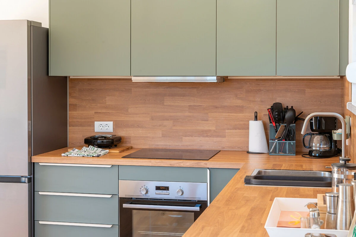 De open keuken, met inductie kookplaat, is uitgerust met koelkast, oven, vriezer, vaatwasmachine, servies/bestek, keukengerei, koffiezetapparaat, broodrooster, waterkoker, kachel, keukengerei, borden en schalen.