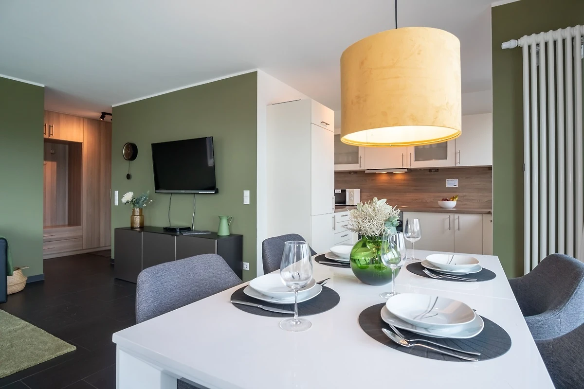 Eine wunderschöne Wohnung. Sehr gute Ausstattung. Blick auf die Ostsee. Kurzer Weg in den Ort. Die Wohnung müsste sauberer sein. Es lagen viele Hundehaare auf dem Boden, die durch die Wohnung flogen.