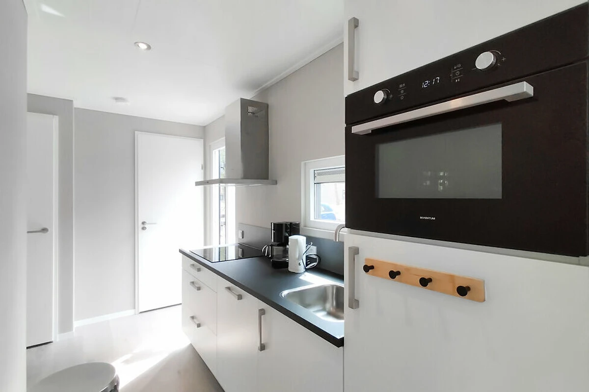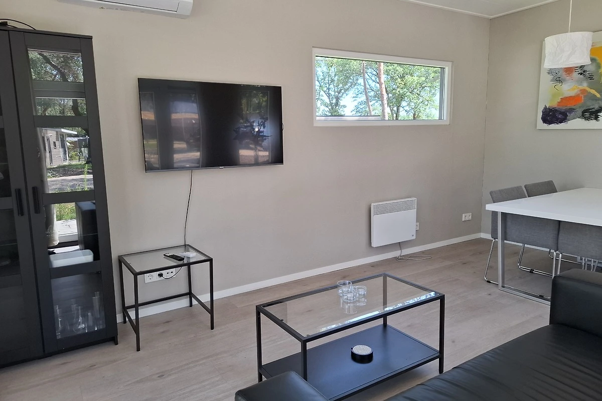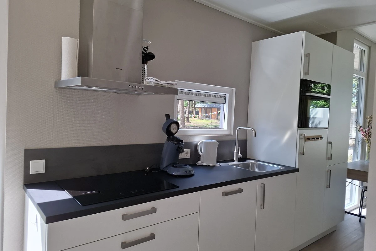 De open keuken heeft een inductiekookplaat, afzuigkap, combi-oven-magnetron, koel-vriescombinatie, vaatwasser en senseo-apparaat. Het huis beschikt over glasvezelwifi (Delta) en een tv-abonnement (NL Ziet). De woonkamer is heel licht door de vele raampartijen en via de openslaande tuindeuren betreed je het terras.